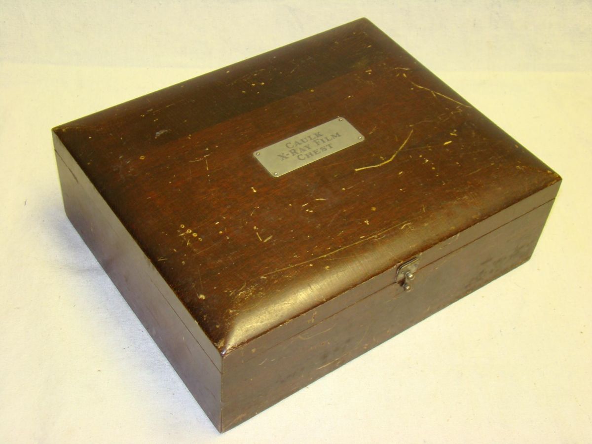 Early 20th century.10" x 12" x 4". Lead-lined wooden chest for keeping unexposed x-ray film.