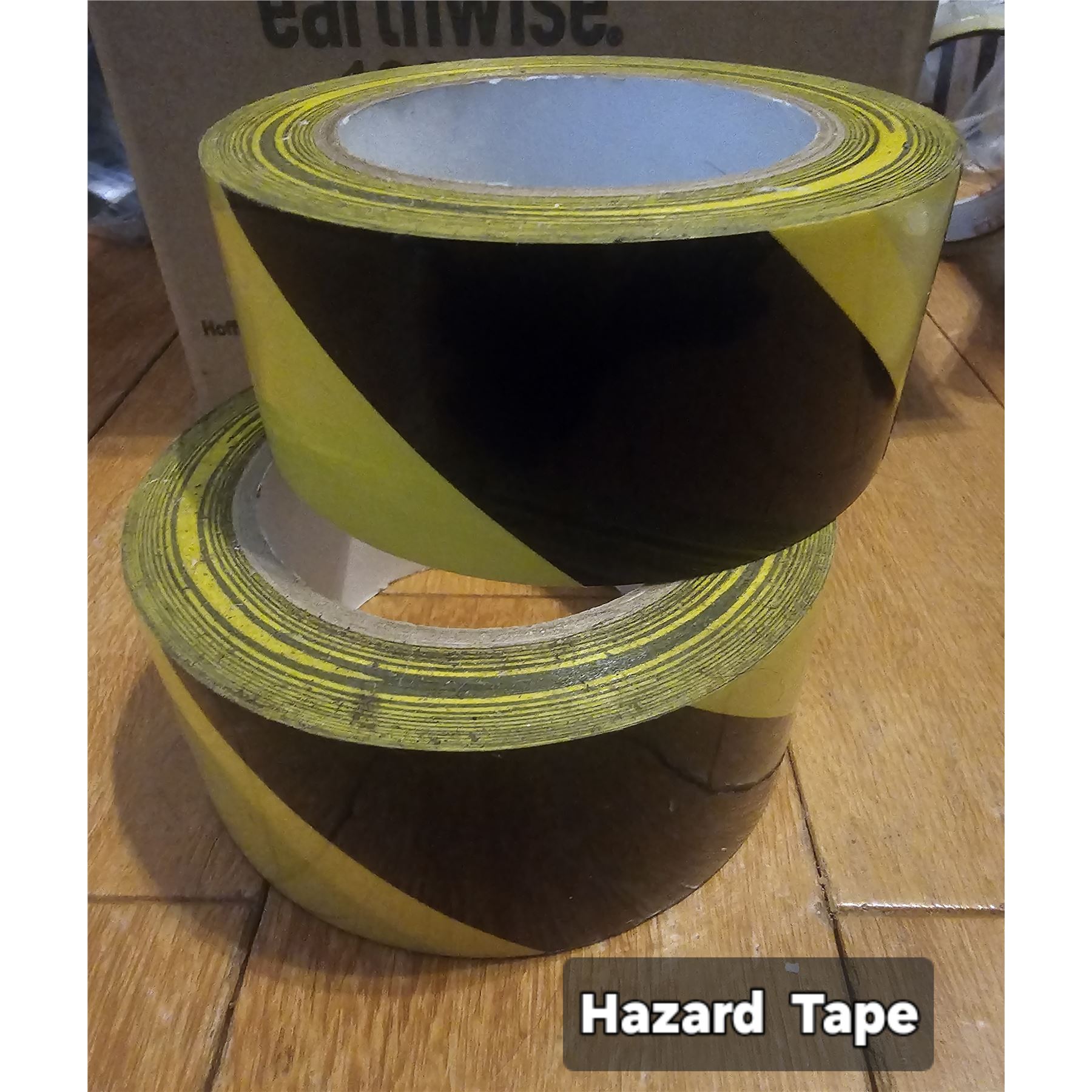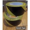High-visibility yellow and black striped adhesive tape, durable for marking hazards and safe areas, new.