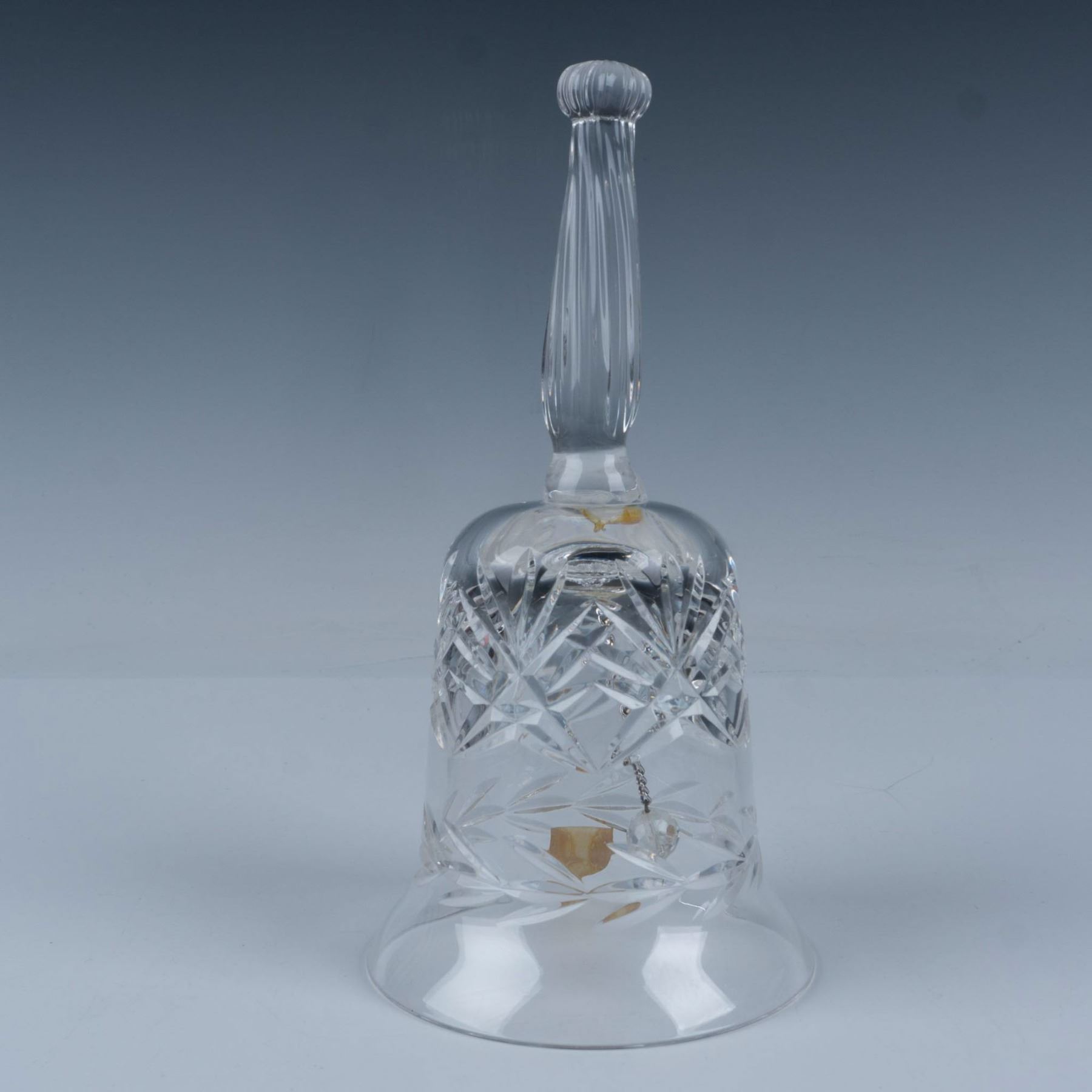 Beautiful Irish crystal dinner bell creates a charming chime when shaken. Measures 7.5"H x 3.75" dia.