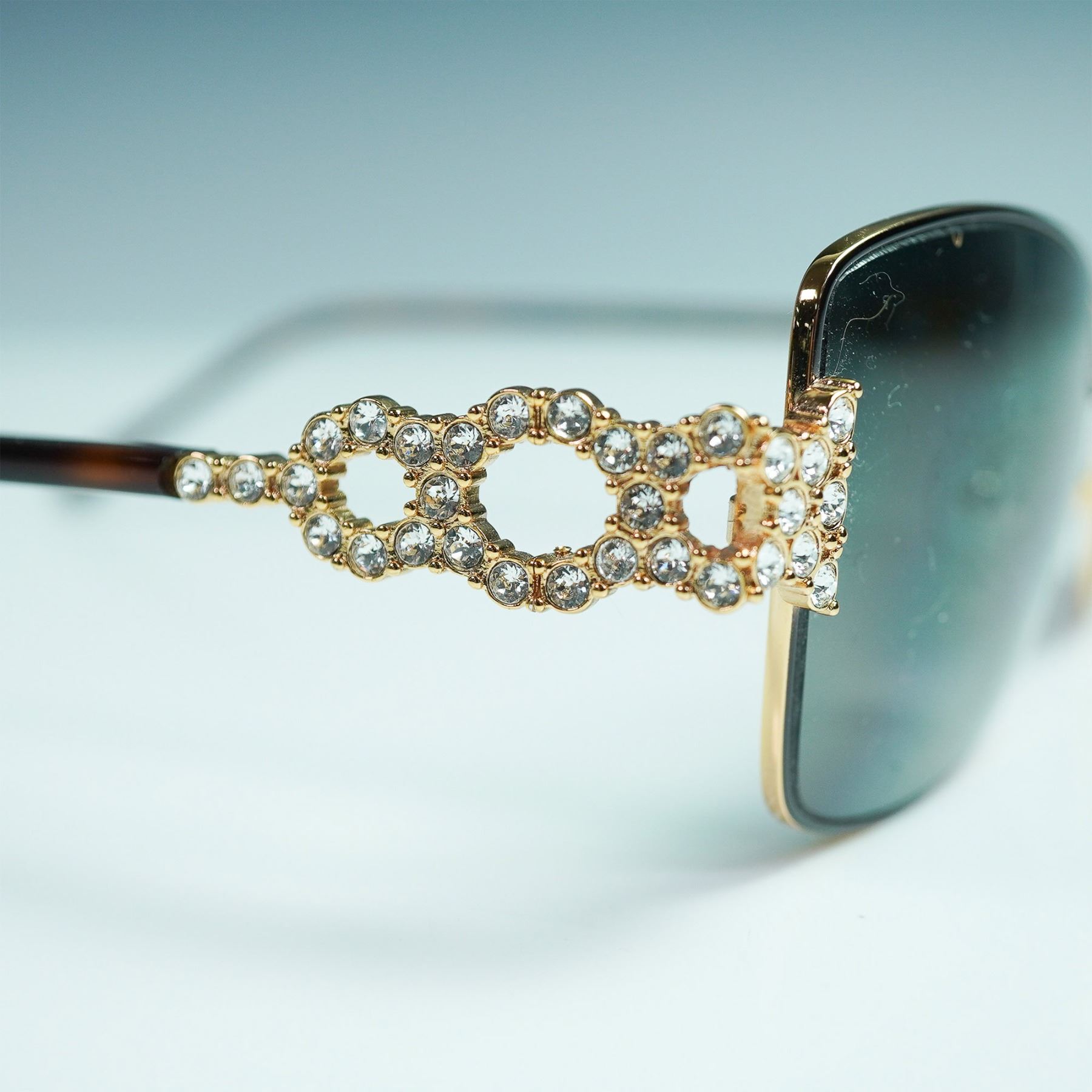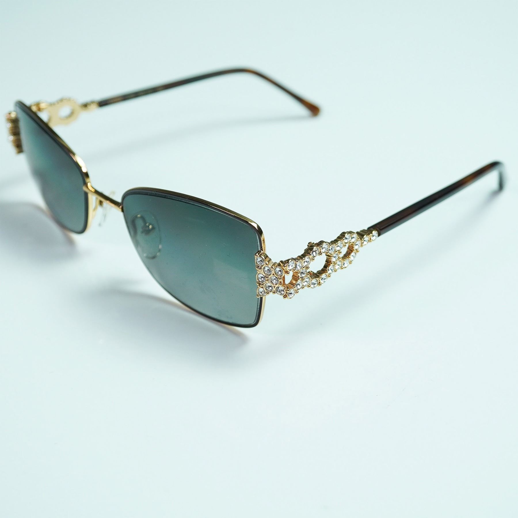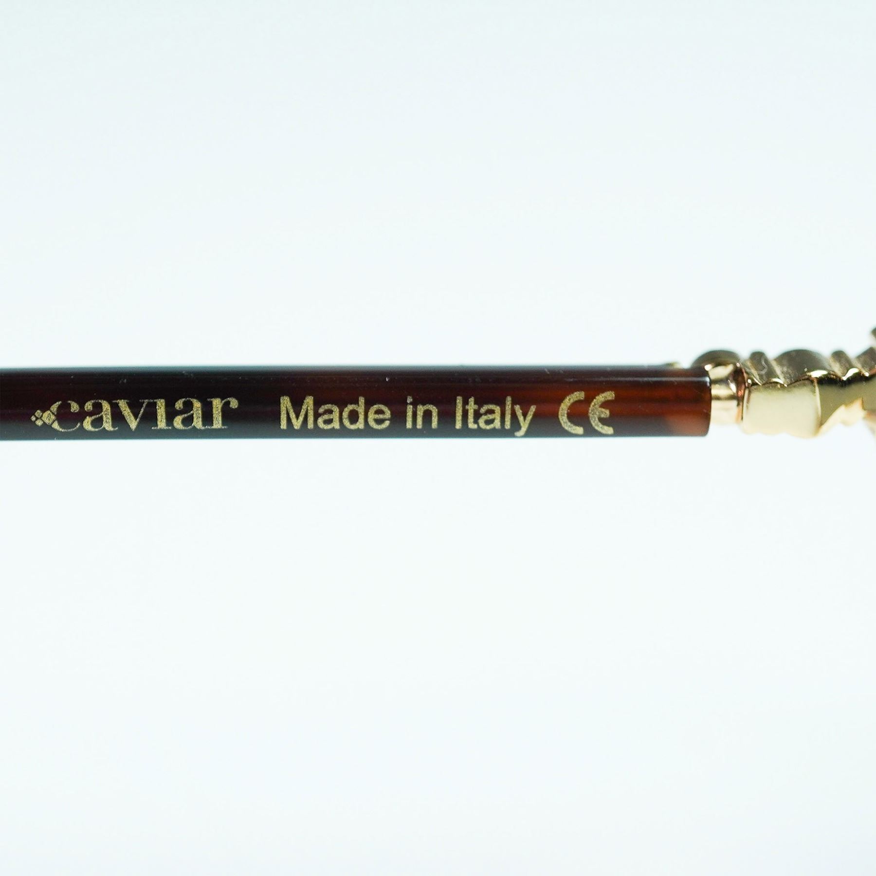 Caviar model 4906 sunglasses made in Italy, featuring gold-tone frames with integrated decorative side elements adorned with clear rhinestones. The lenses are dark-tinted and rectangular in shape with a slight cat-eye contour. Marked on the inside arm with model number M4906 C16.