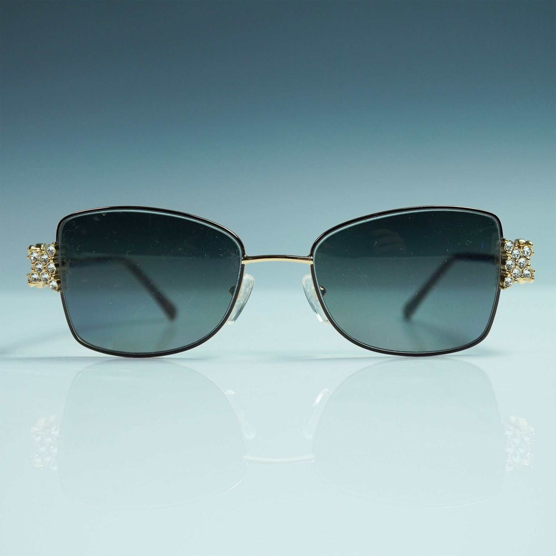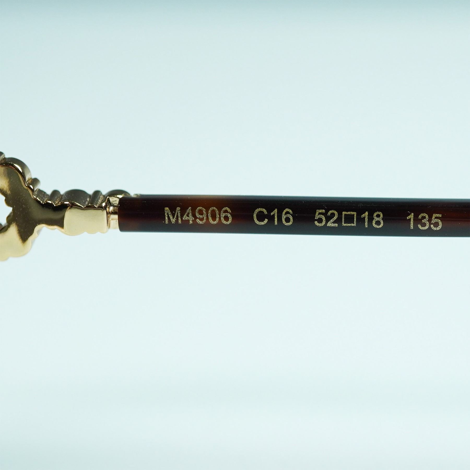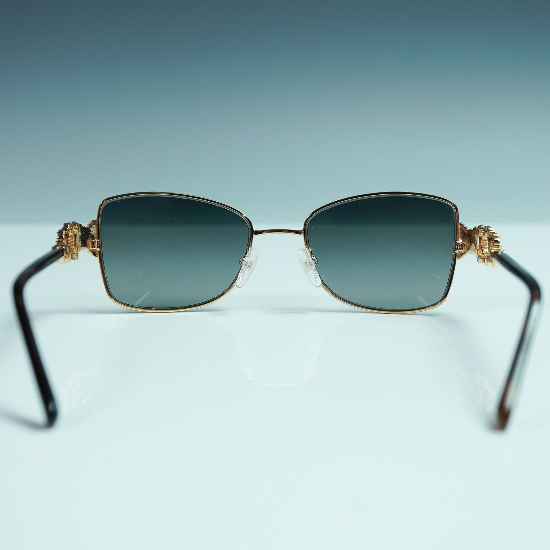 Caviar model 4906 sunglasses made in Italy, featuring gold-tone frames with integrated decorative side elements adorned with clear rhinestones. The lenses are dark-tinted and rectangular in shape with a slight cat-eye contour. Marked on the inside arm with model number M4906 C16.