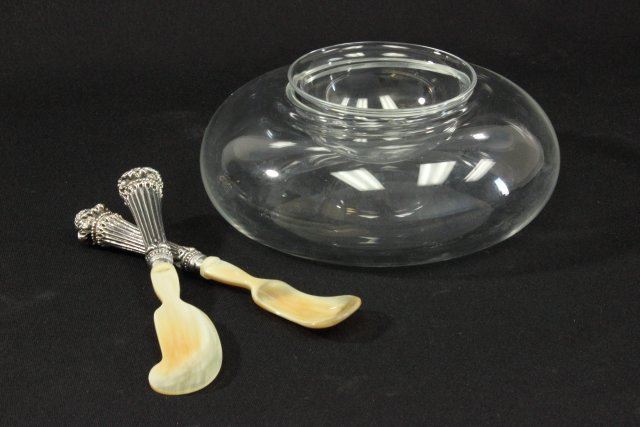 Italian 925. Including Caviar bowl approx. 3 1/2" H x 8" D. Serving pieces Approx 7" long.