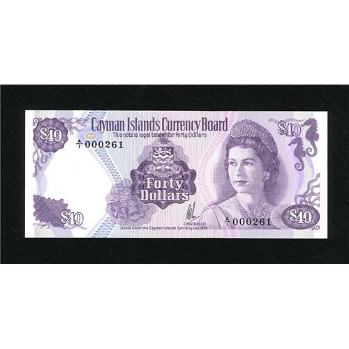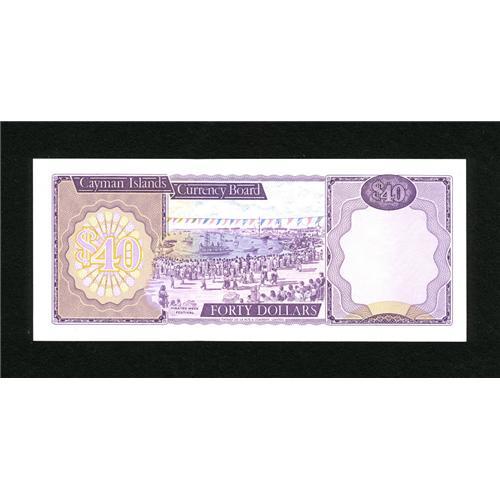 <B>Cayman Islands</B></I> Cayman Islands Currency Board $40 1974 Pick 9a<BR>A very odd denomination is noticed on this bright note that carries a vignette on the back of "Pirates Week Festival." <B>Crisp Uncirculated.</B></I><BR><BR><b>Shipping:</b> Coins & Currency (<a target="_blank" href="http://www.heritageauctions.com/common/shipping.php">view shipping information</a>)