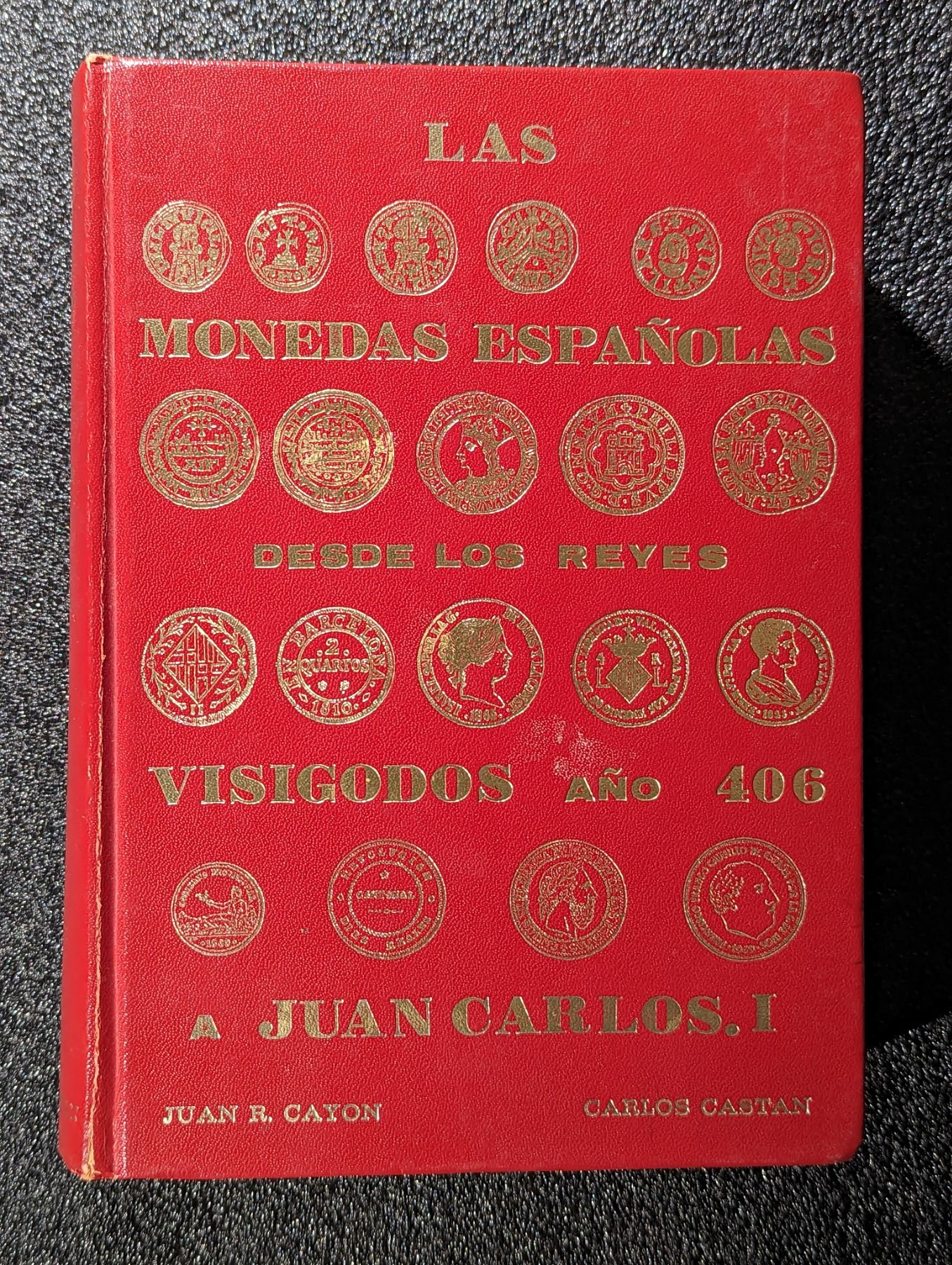 Cayon, Juan R. & Carlos Castan. LAS MONEDAS ESPANOLAS DESDE LOS REYES VISIGODOS, ANO 406, A JUAN CARLOS I. Juan R. Cayon & Carlos Castan, Madrid. 1983. 8vo. 930, (2) pages. Original red leatherette, gilt. b&w coin photos throughout. Fine. This book is a guide to Spanish and Spanish colonial coins minted from the time of the Visigoths (406 AD) through the reign of Juan Carlos I (1983). The coins are presented chronologically by year of mintage, denomination, monarch and type. Prices included are in Spanish pesetas for XF examples. Each type has an obverse and reverse coin photo or illustration. A brief history of the monarch or time period precedes the coin listings. Lot weight: 5 lbs 3oz. Subject(s): Spanish, Spanish American Coinage.