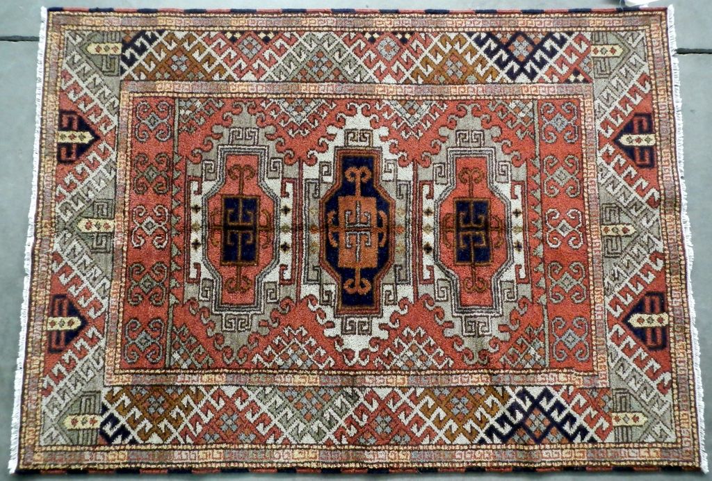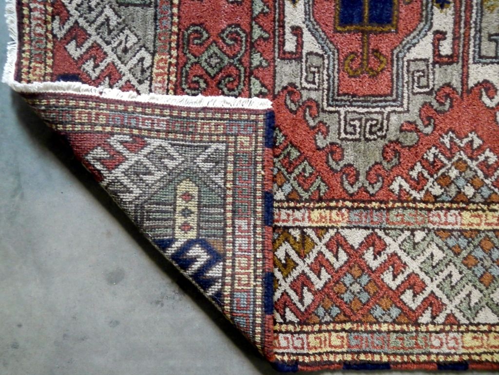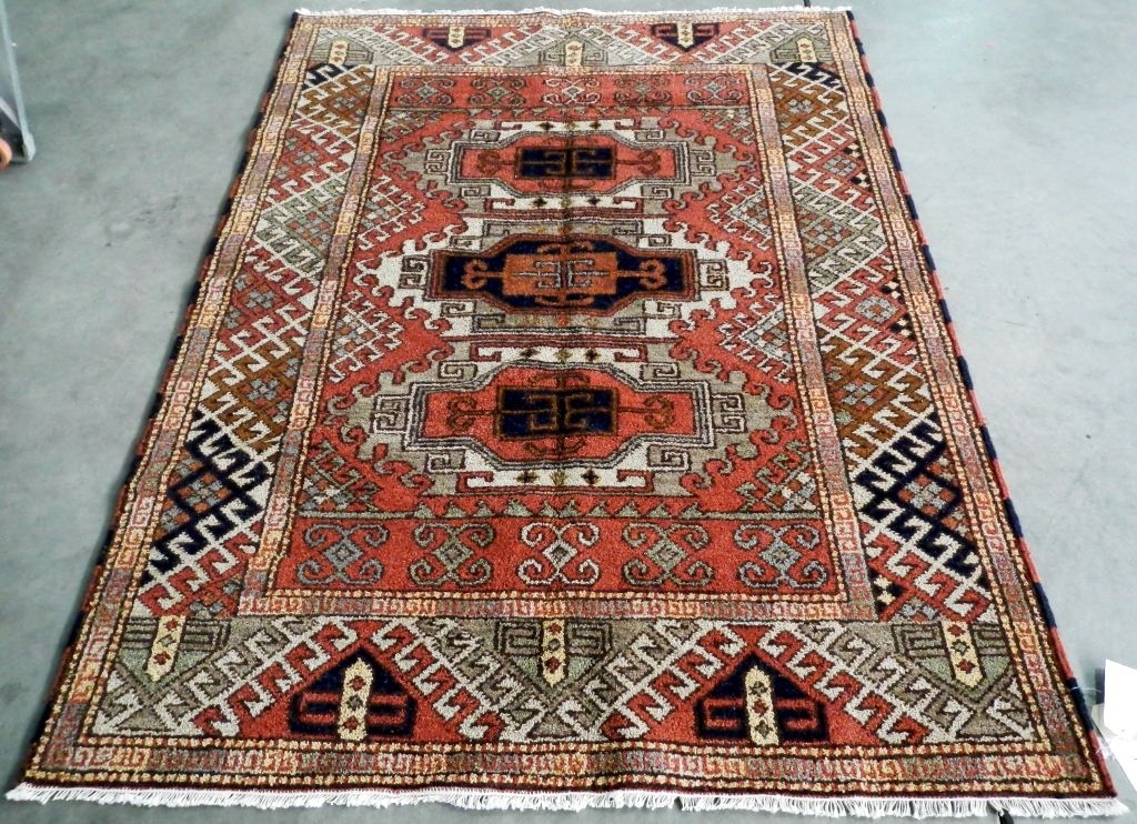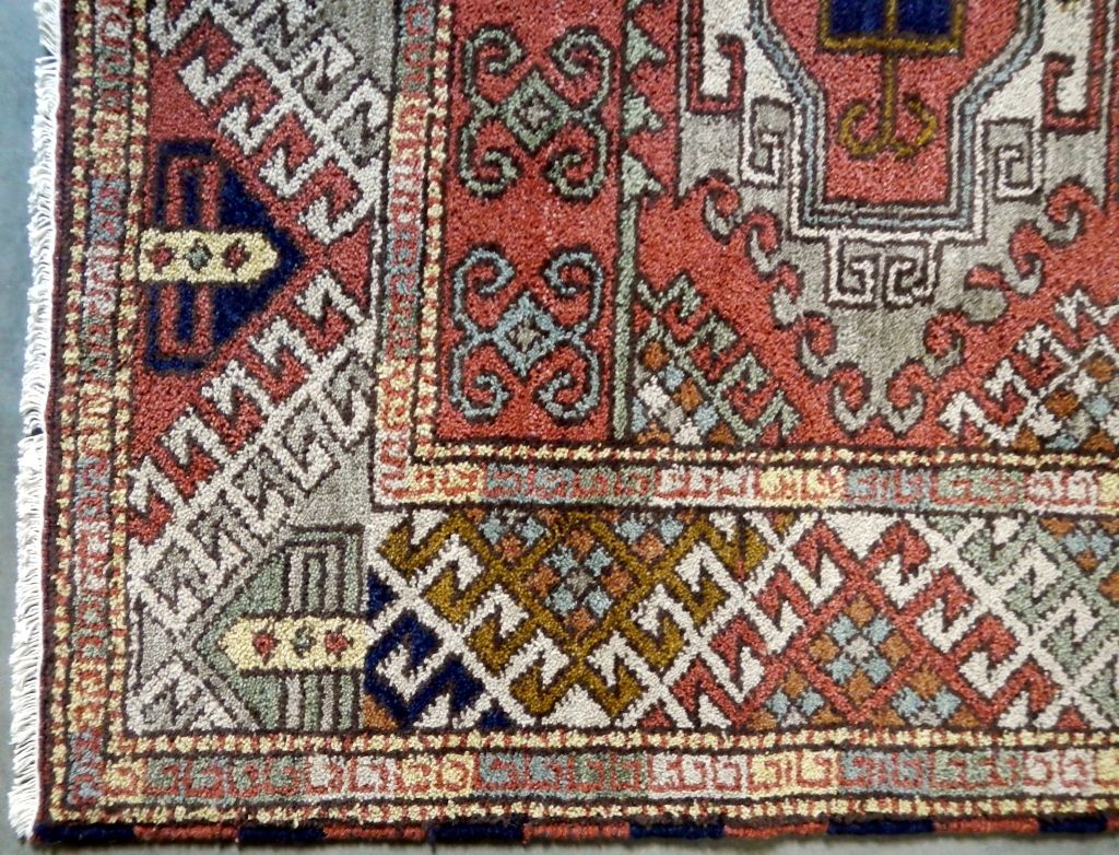Cazak Rug Hand Woven in India with Color Fast Chrome Woven Dyes. Cazak originated in the Caucasus Mountains. 100% Wool Rug. Cazak Pattern. Size is 4.9'x6.7'