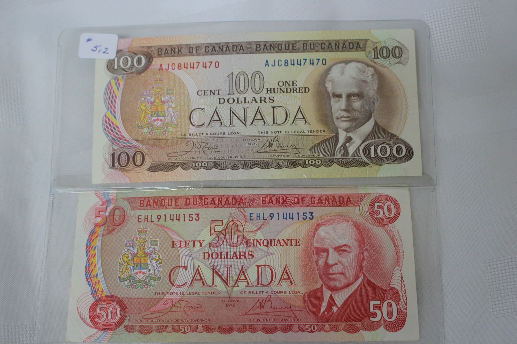 Cdn. 100 & 50 Dollar Bills - 1975 - Crow & Bouey