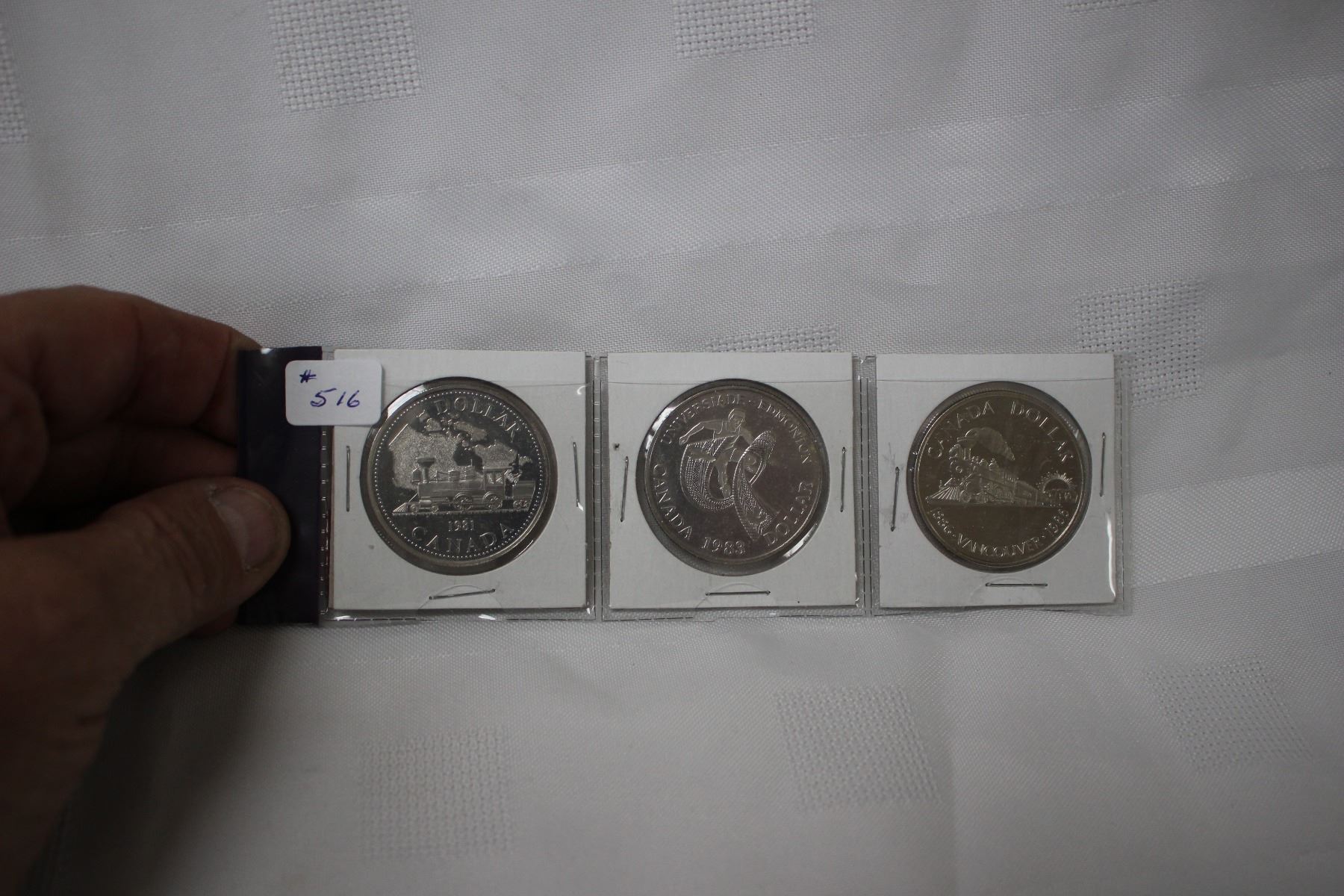 Cdn. Collector Dollar Coins - Silver - 1981, 1983, 1986
