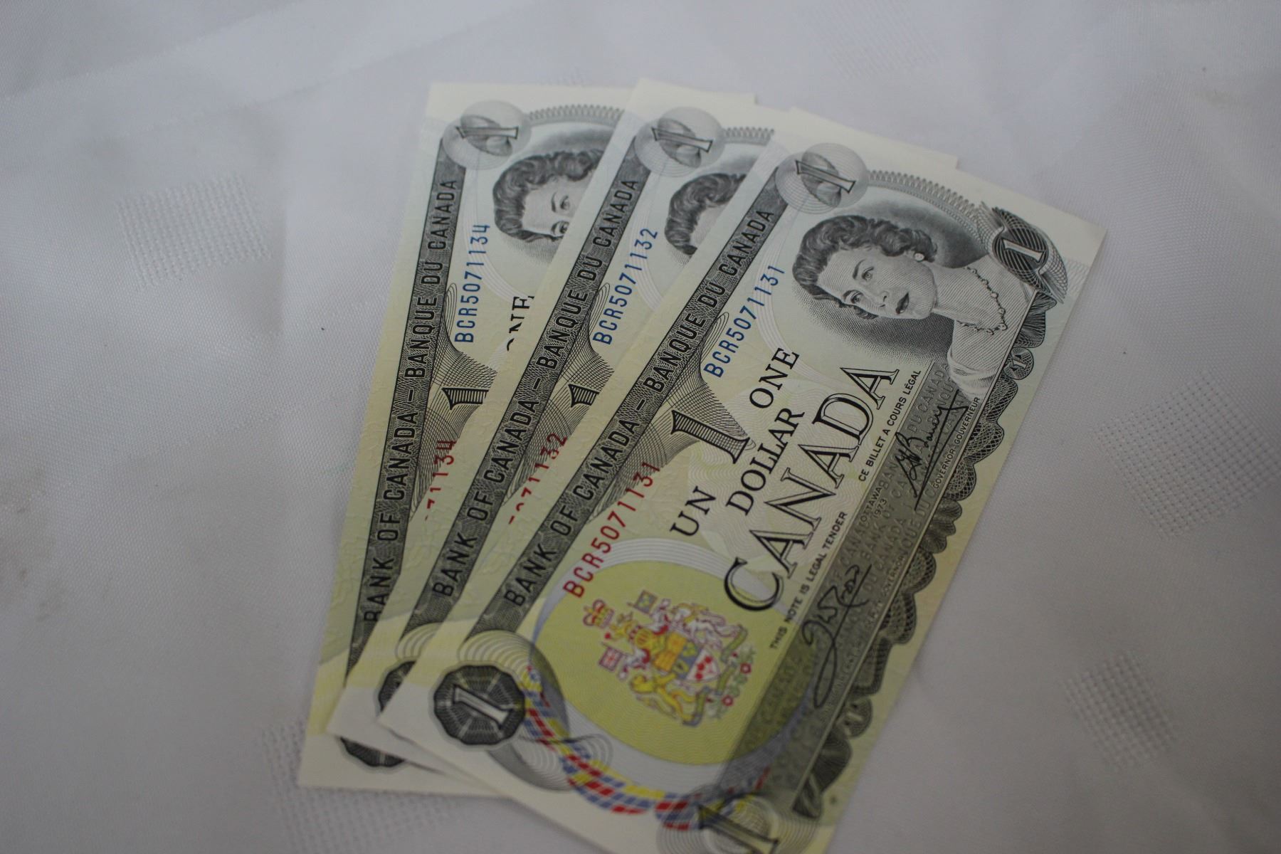 Cdn. Dollar Bills (3) 1973 - 3 sequenced bills