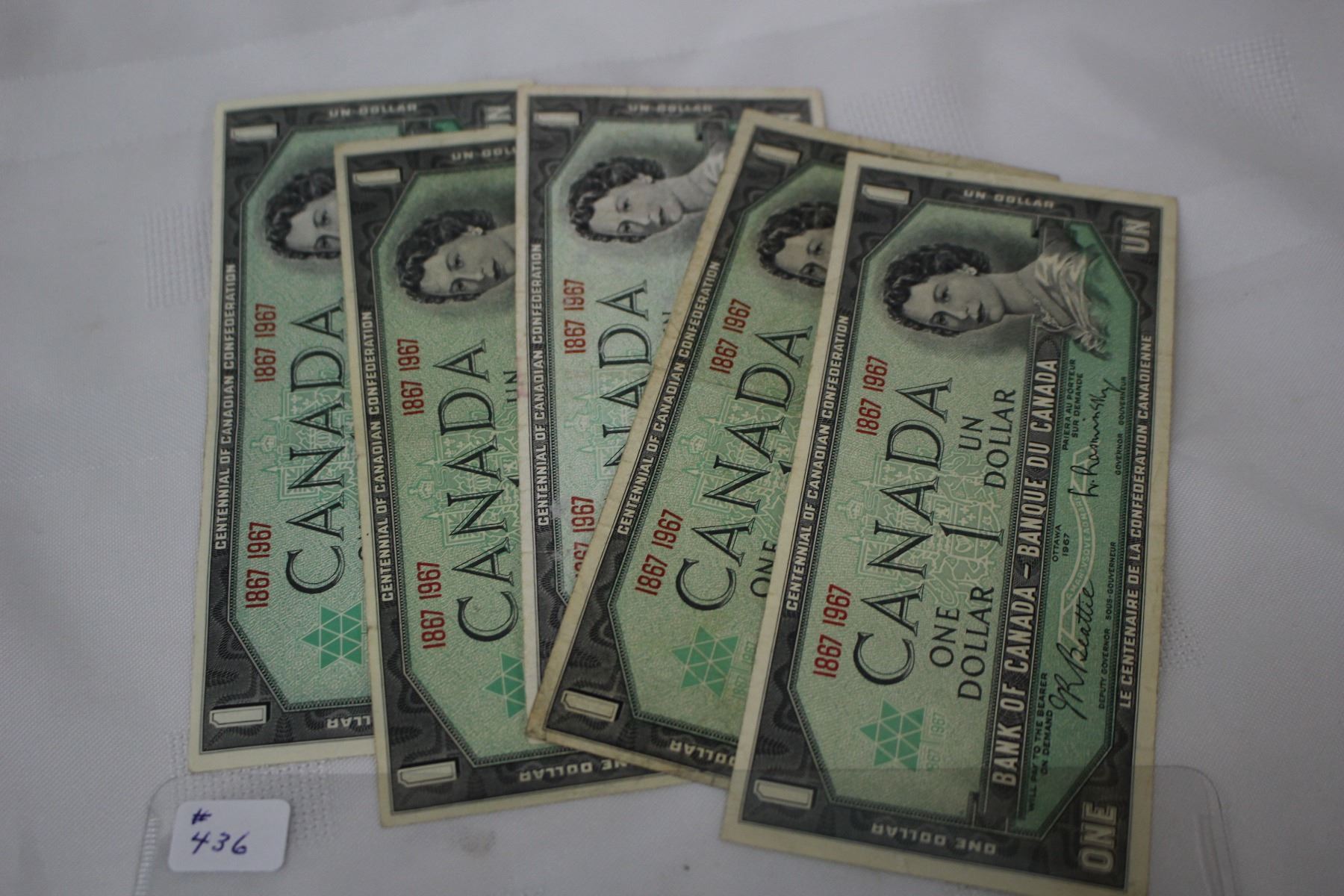 Cdn. Dollar Bills (5) 1967 - Confederation - No Serial Numbers
