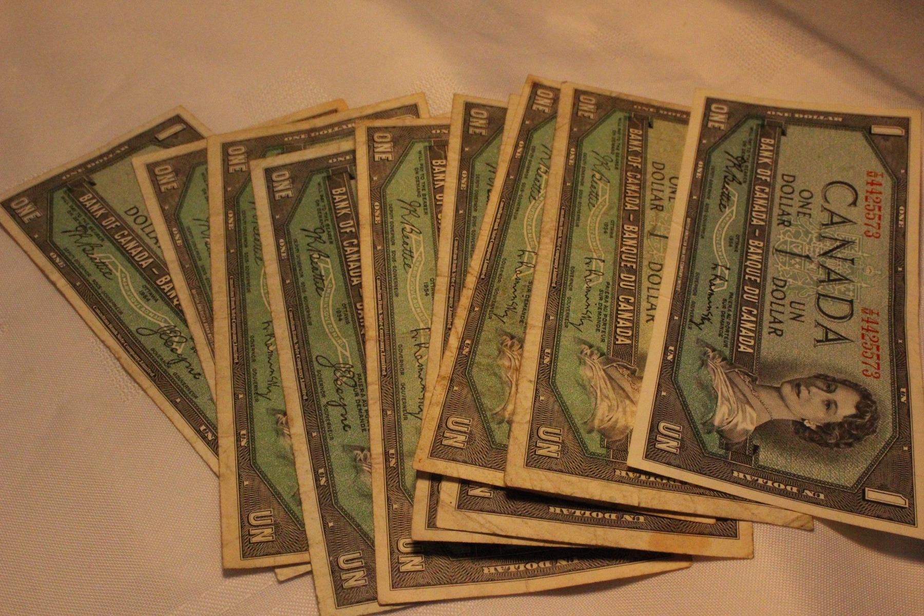 Cdn. One Dollar Bills (1) Beattie, Rasminsky - 1954 - Modified