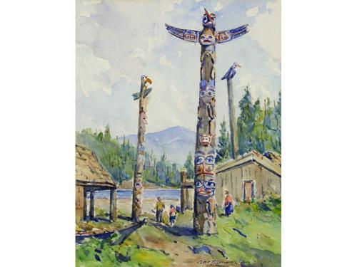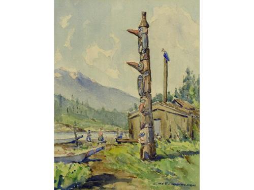 [Canadian 1897-1973] TOTEM "TLINGIS" TOTEM "WRNGELE" Two watercolours on paper Various dimensions Both signed & titled LOT OF TWO