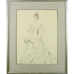 Cecil Beaton (1904-1980) (England) Ink Drawing, Fashion, 18" x 13", signed lower right, Est $1,000 - $2,000