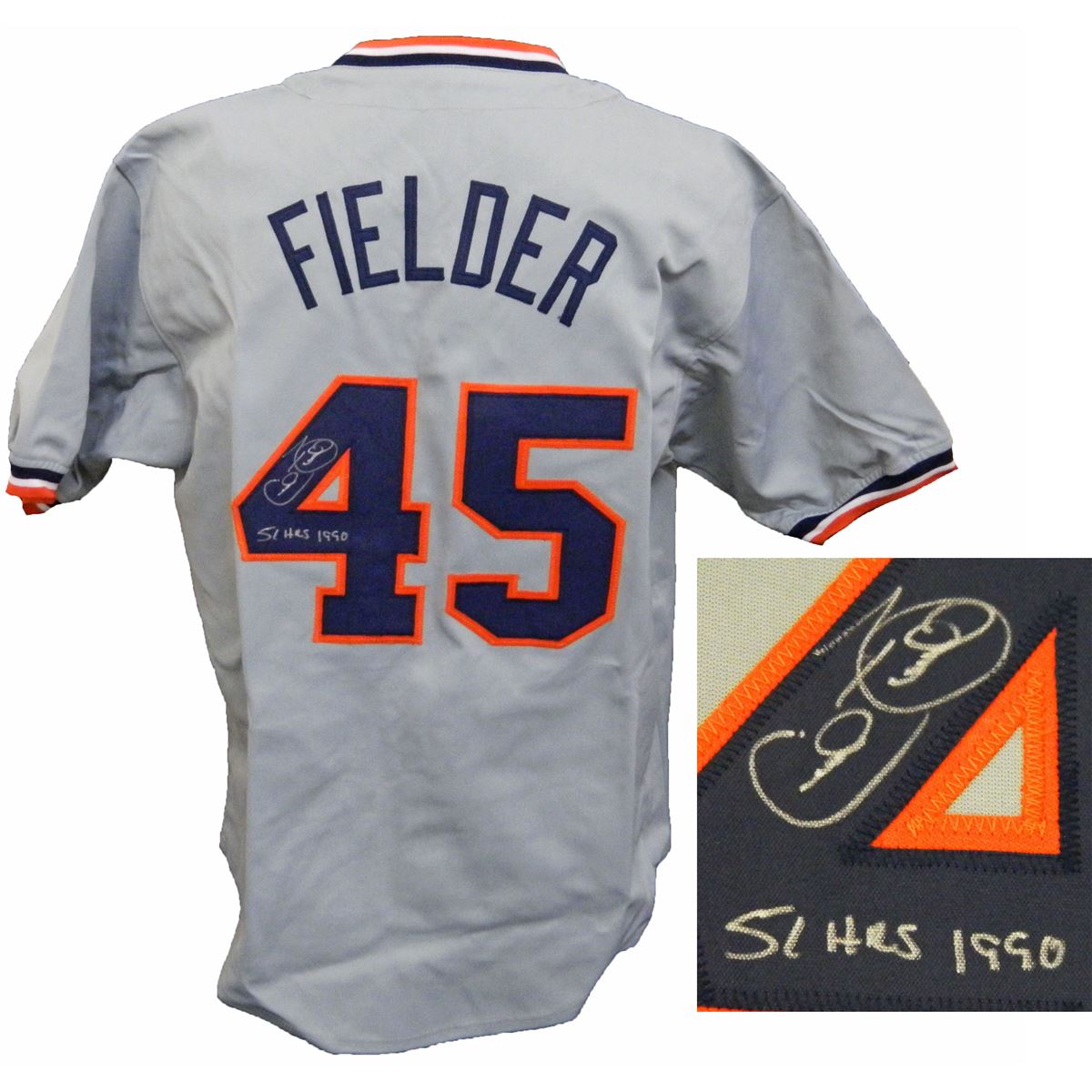 Cecil Fielder signed grey custom baseball jersey with '51 HRs 1990' inscription. Item comes with a Schwartz Sports Memorabilia tamper-proof numbered hologram and Certificate of Authenticity which can be verified online.