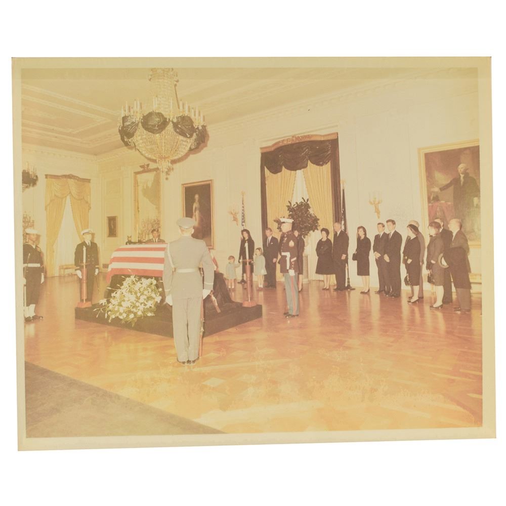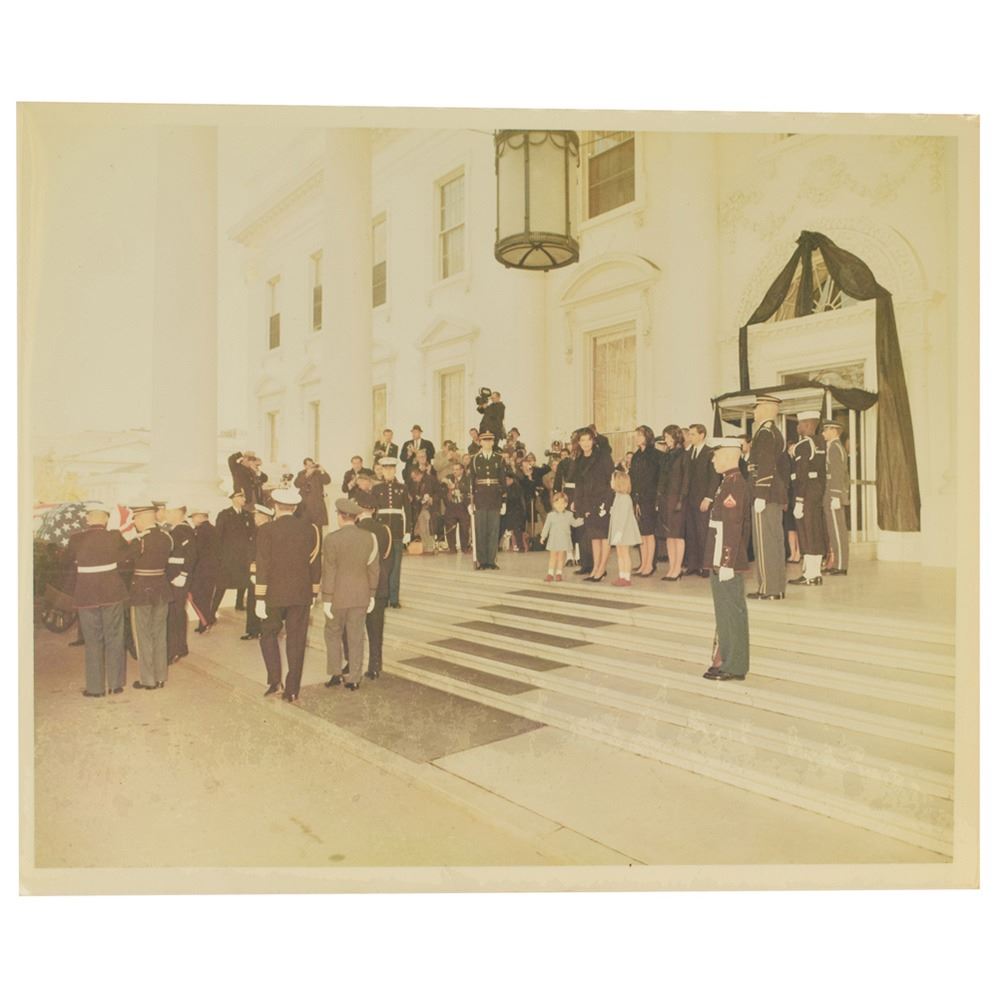 Six photos of the procession as it departs for the Capitol, with images of the North Portico, the North Lawn driveway, a crowd-lined Pennsylvania Avenue, and the riderless horse Black Jack. In overall fine condition. A exceptional offering, somber yet distinctly significant, which offers a unique glimpse into the funereal proceedings held mere hours after the tragic death of an American hero.