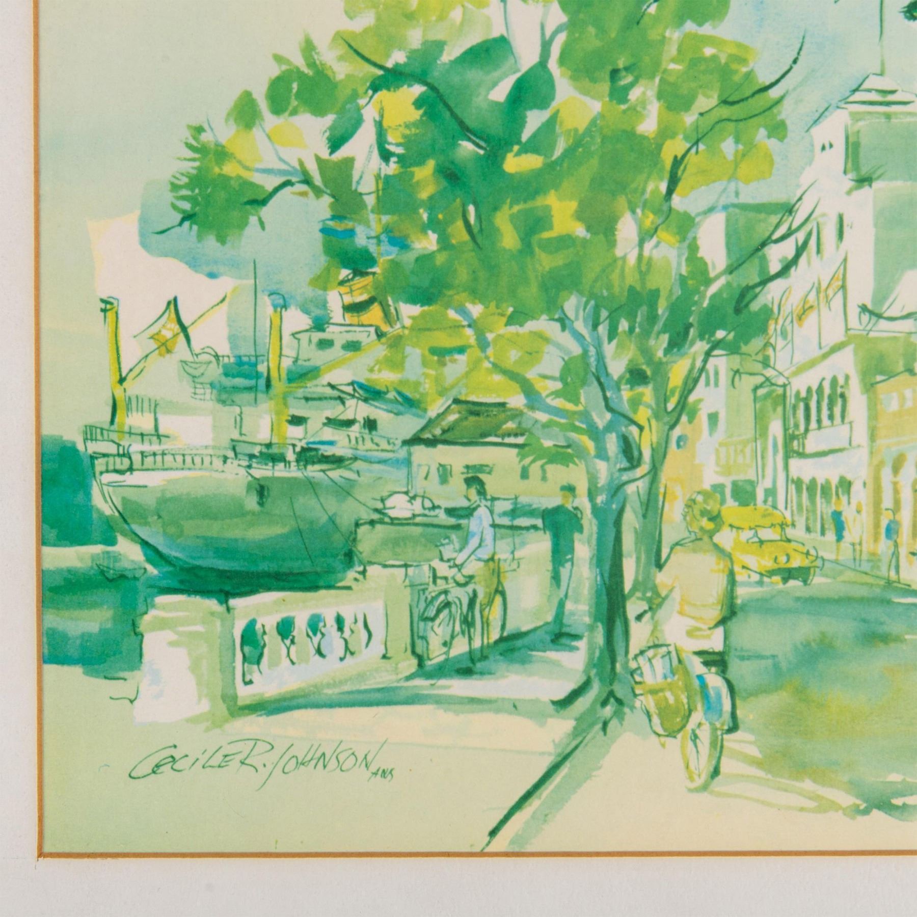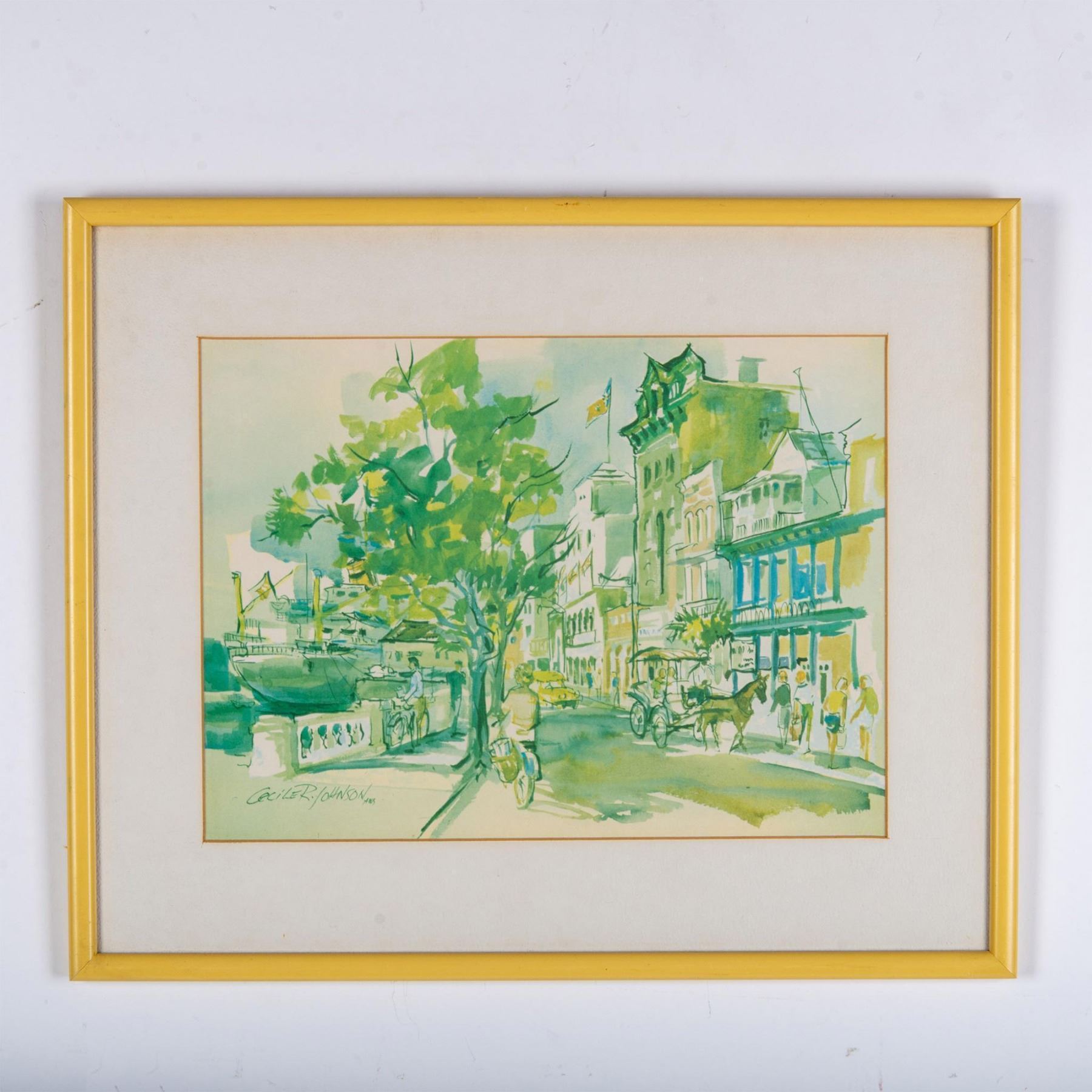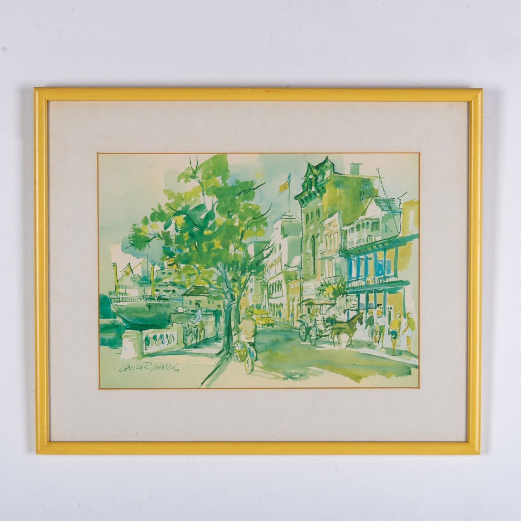 Cecile Johnson, Offset Watercolor on Paper, Town Scene
