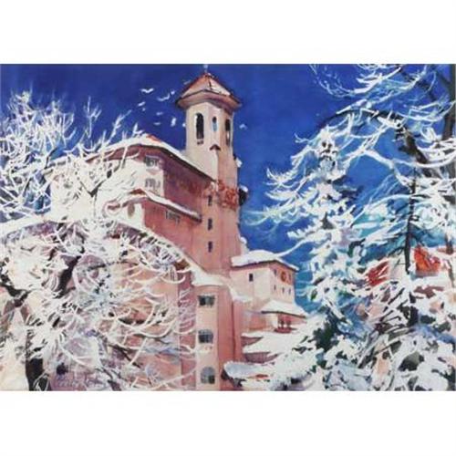 Cecile Ryden Johnson (20th) "The Broadmoor Hotel" Watercolor Signed lower left 20 1/2" x 29"