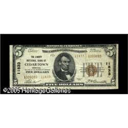 <B>Cedartown, GA</B></I> - $5 1929 Ty. 2 <B>The Liberty NB</B></I> Ch. # 11833<BR>All of the surviving five $5 Type 2 examples from here have serials very close to the end of the print run. This is the only circulated example among them. We've sold two of the uncirculated pieces before, one in 2001 and the last at our Florida United Numismatists auction in 2004. Both sold in the $800-$900 range. We expect this <B>Very Fine</B></I> note will sell for about... Lot:16829