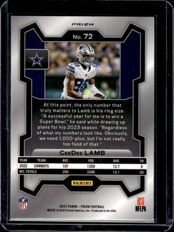 CeeDee Lamb 2023 Panini Prizm Green Wave Prizm #72
