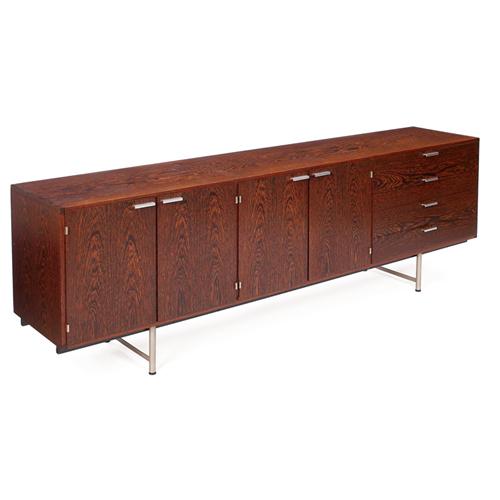 Cees Braakman DWO 3 credenza, by UMS-Pastoe, c.1965, wengé cabinet with beautiful woodgrain with four drawers and four doors, two adjustable shelves, brushed steel handles and base, marked "Pastoe", original finish, 89.5"w x 19"d x 28.5"h, excellent condi