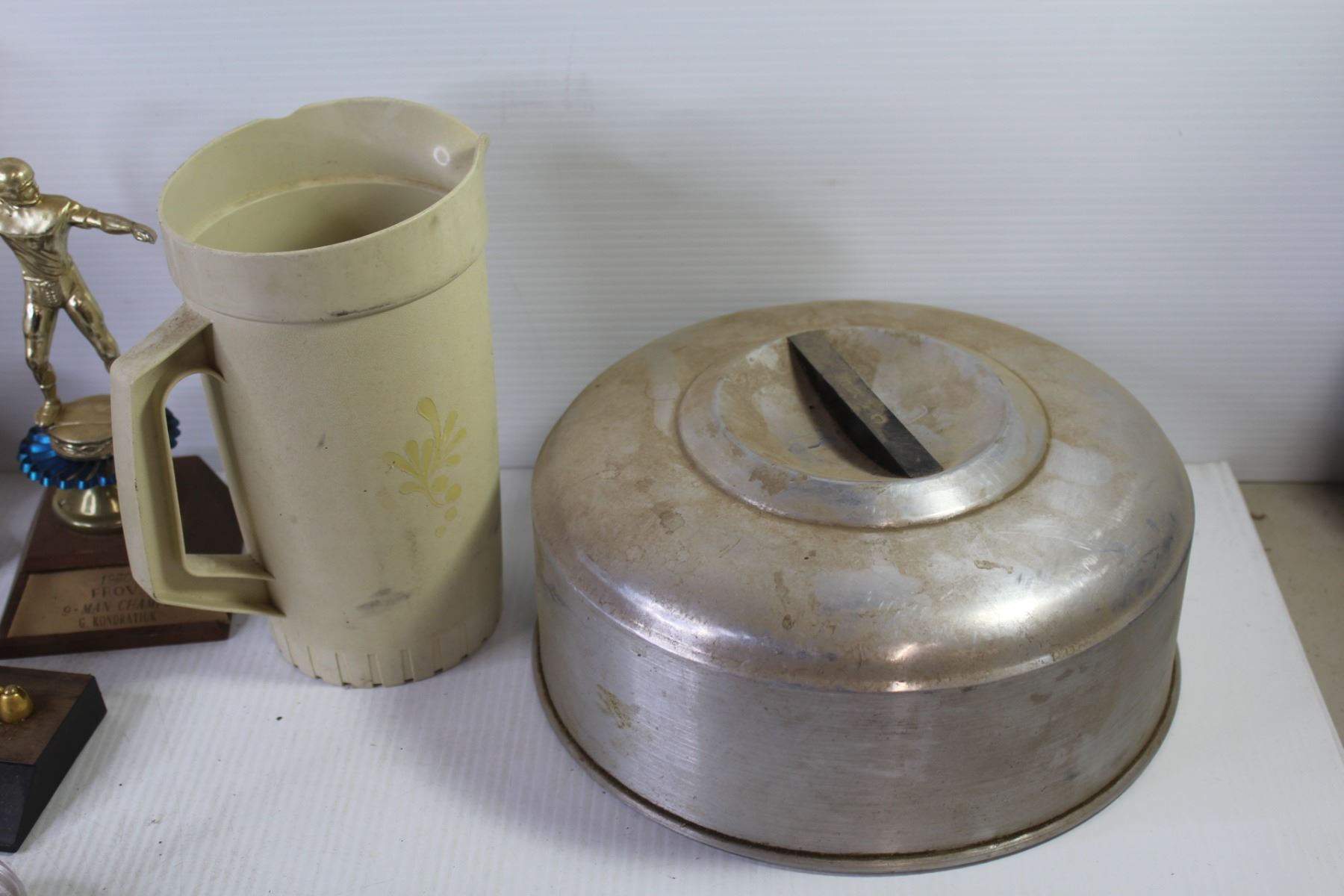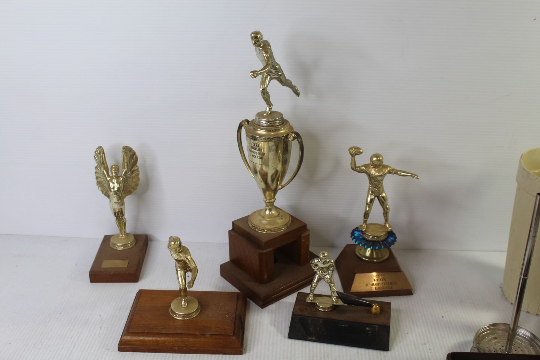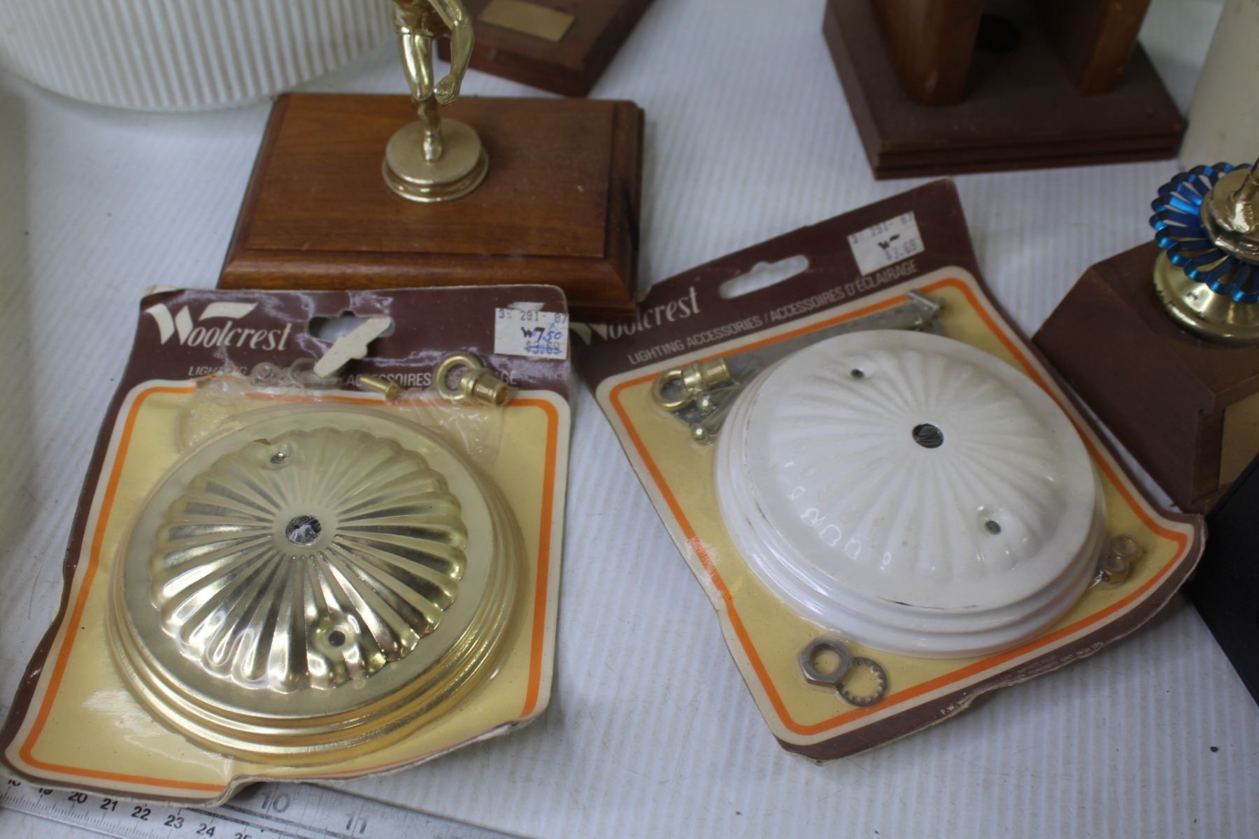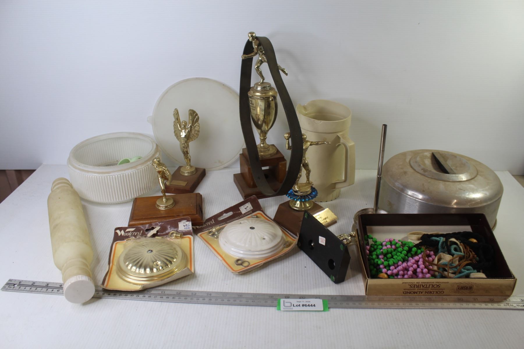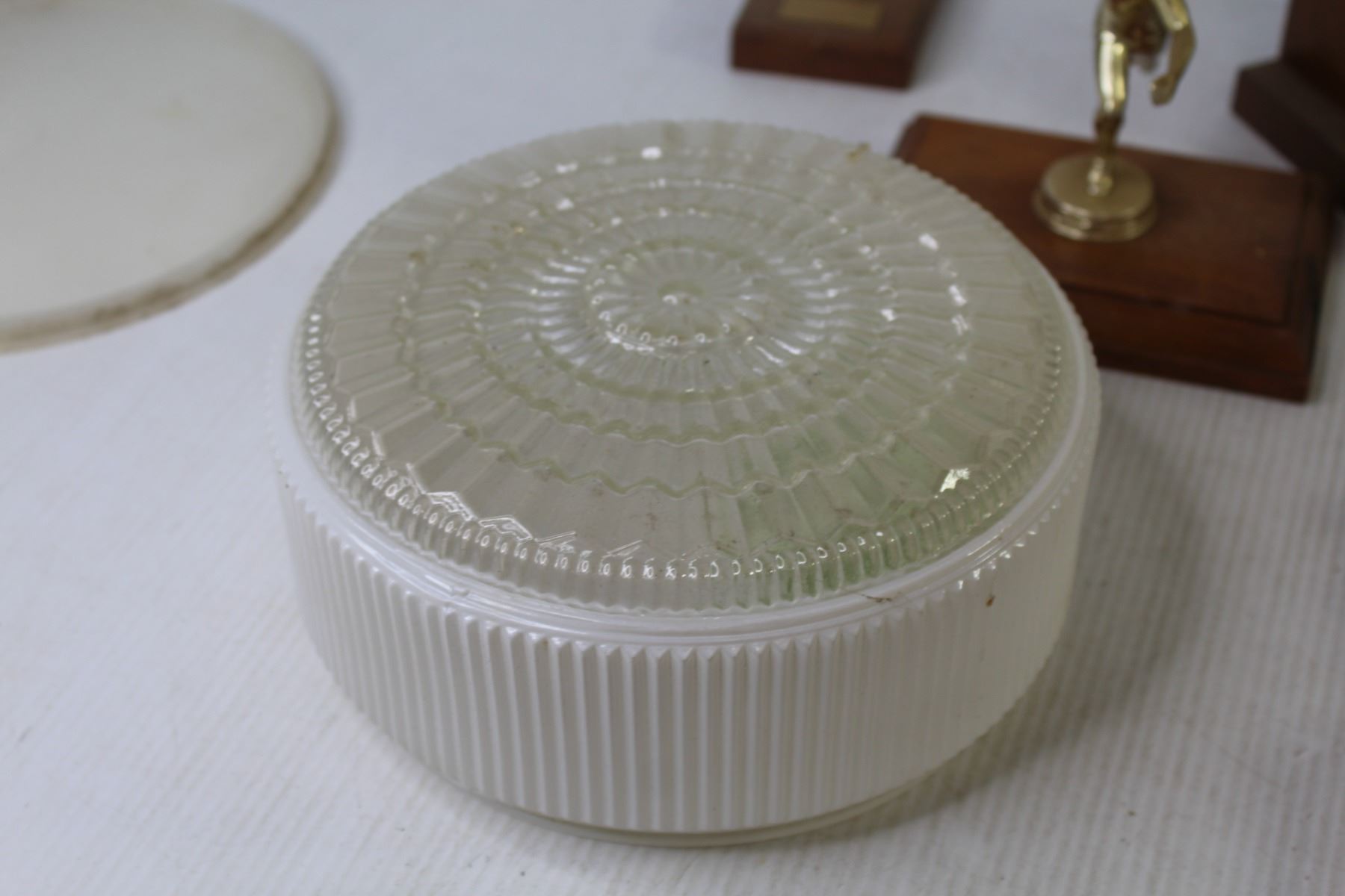 Ceiling Light Bases (NIB) - Glass Light Shade - Assorted Trophies - Misc. Items