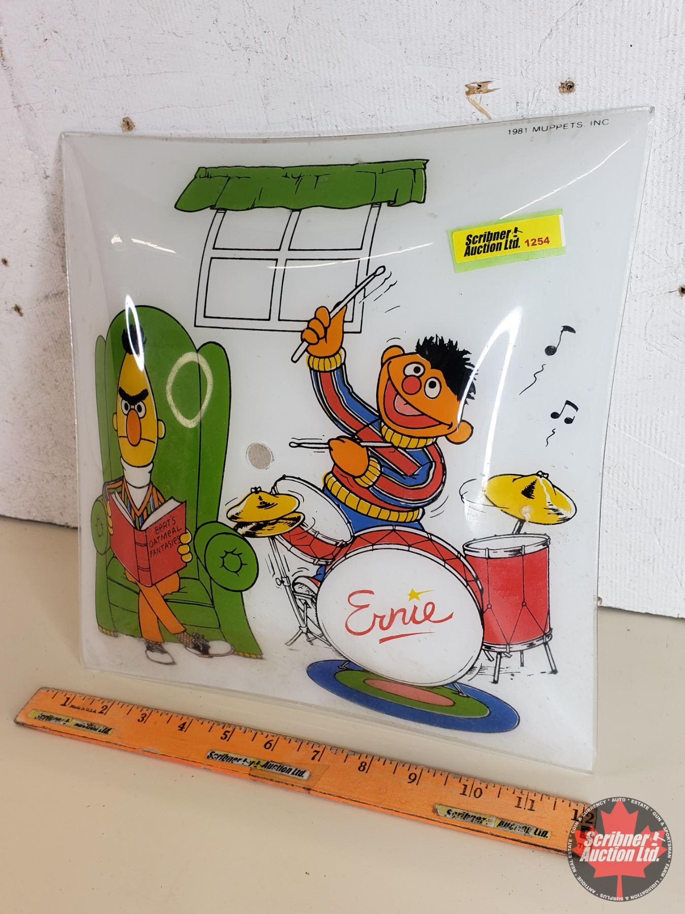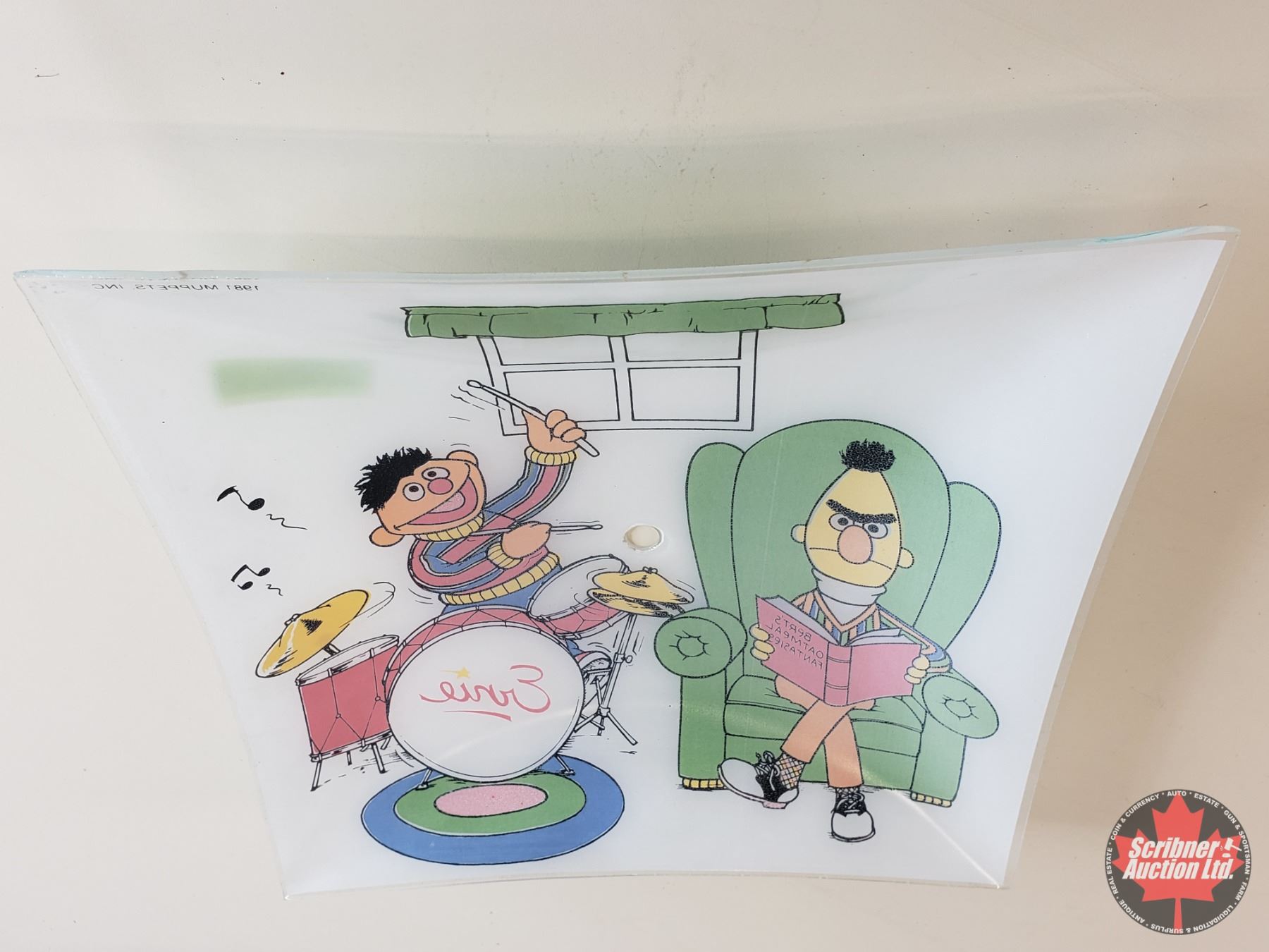 Ceiling Light Cover "Bert & Ernie" 1981 MUPPETS. INC : Square Glass Light Shade (3"H x 12"W x 12"D) (SEE PICS!)