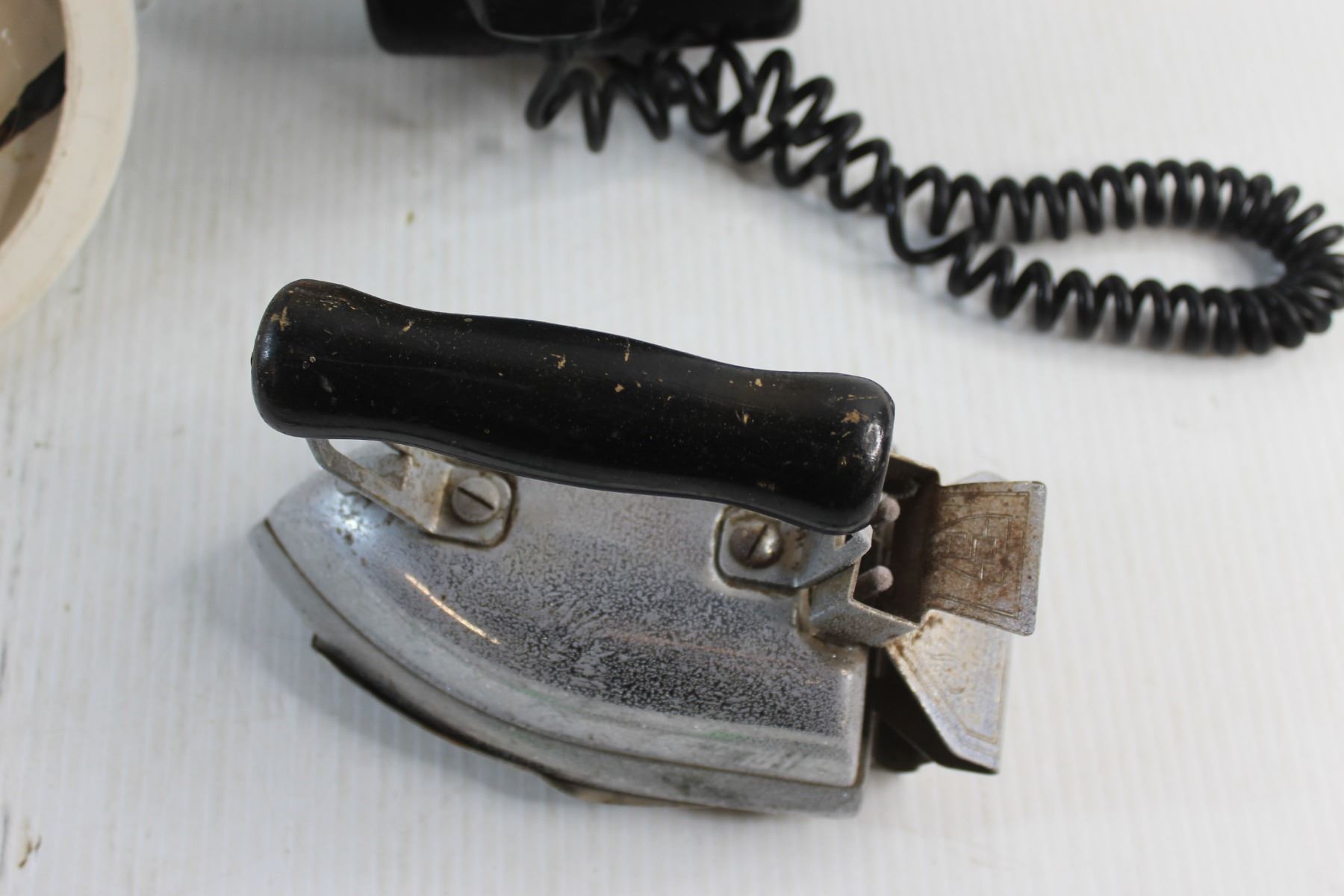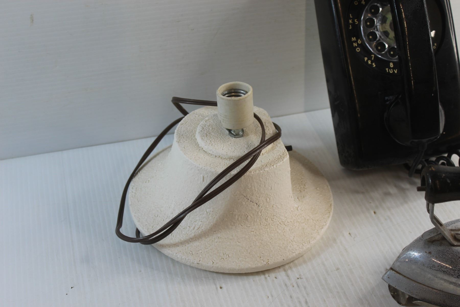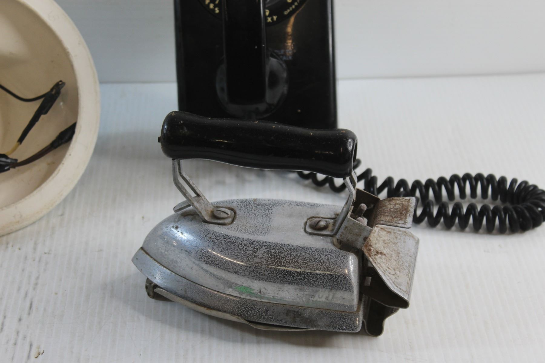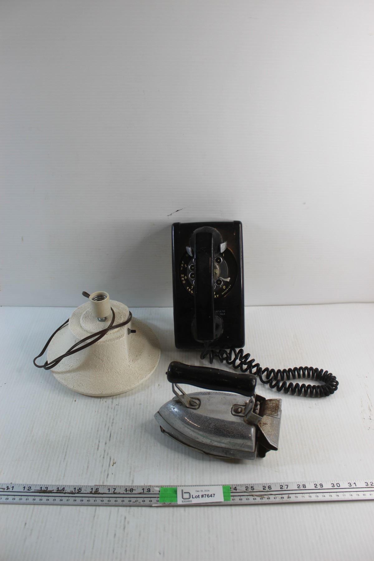 Ceiling Light Fixture, Vintage Telephone - As Is and Clothes Iron