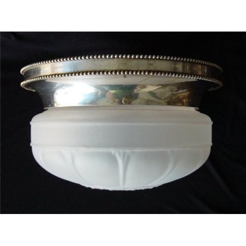 Circa 1920 Silverplate flushmount fixture with frosted glass lens ,diameter 13" depth 8".