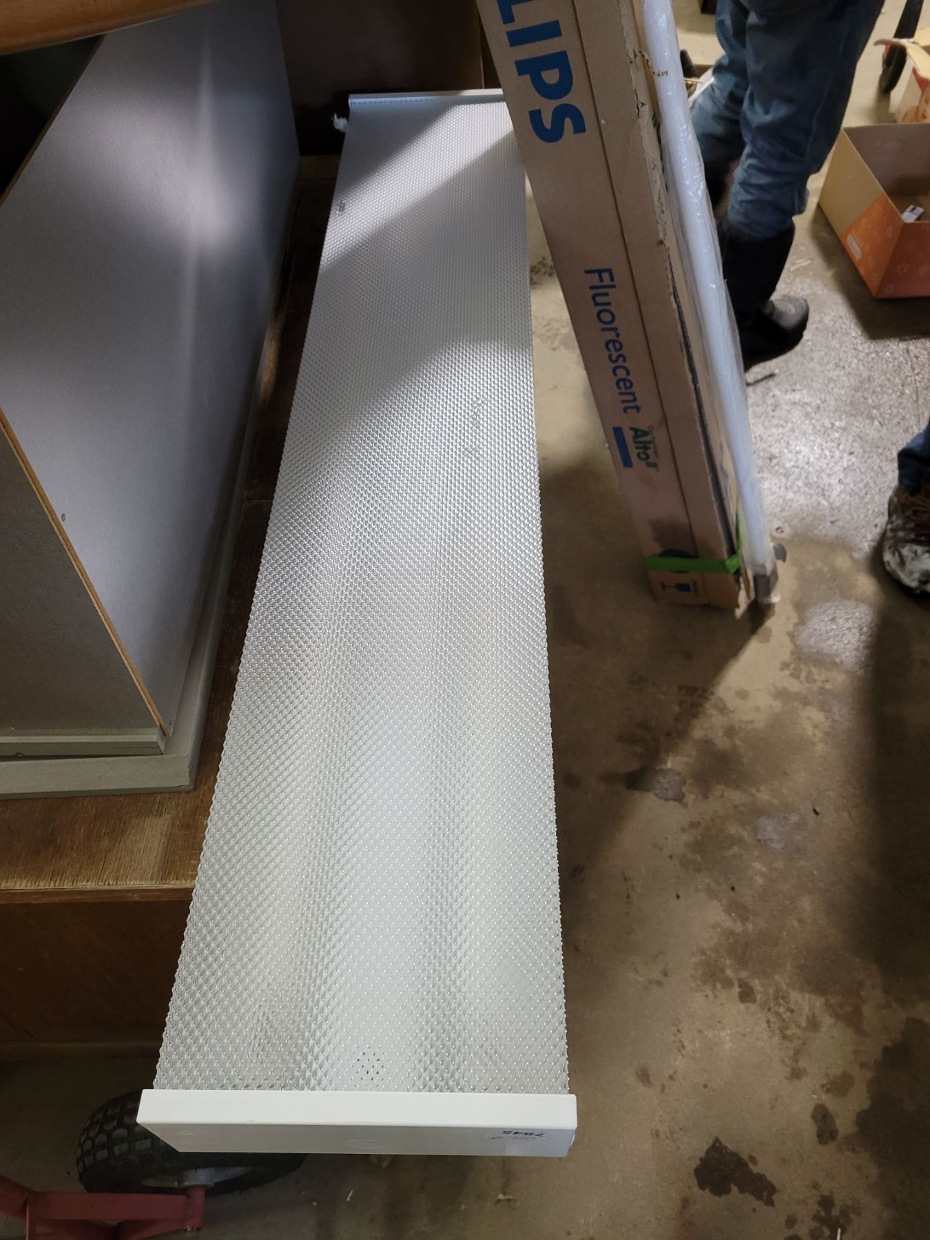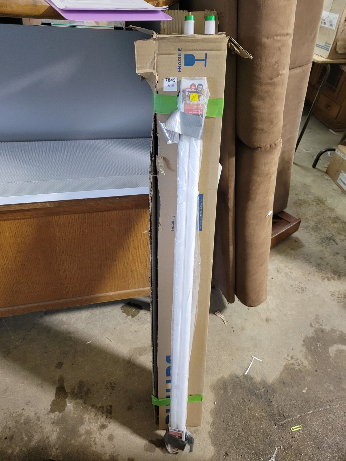 Ceiling light fixture with box of 19 bulbs 48" long