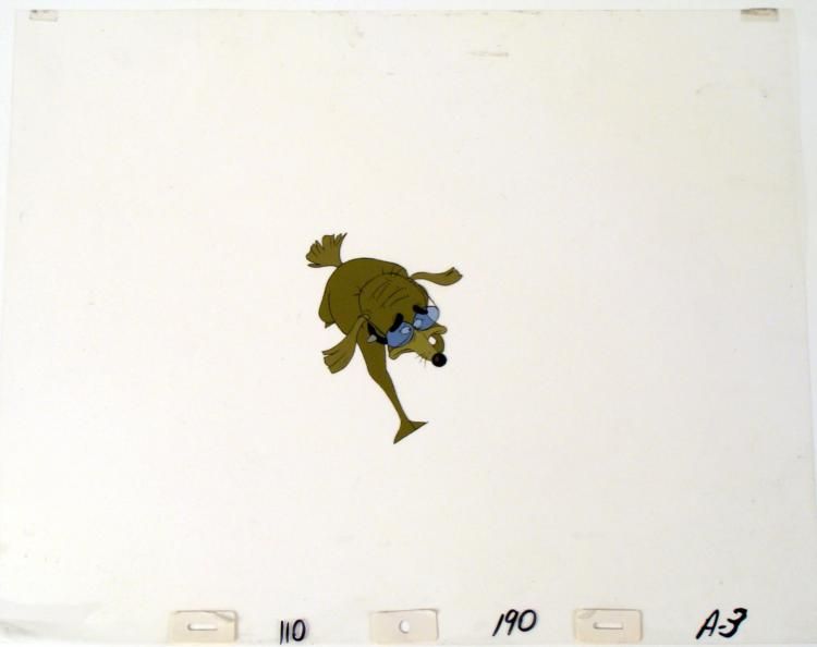 A dog returns from the dead looking for revenge on his killer using an orphan girl who can talk to animals. * * * * Someone with the name of Killer, should be more intimidating, not looking intimidated... * * * Original Animated Cel Overall Size of Cel: 13 1/2" x 16 1/2" Excellent Condition * This is an original hand-painted cel was used in the the movie "All Dogs Go To Heaven." Each one-of-a-kind cel * represents a slight change in position of the characters. When individually photographed and projected in rapid succession, the images appear to move. * * To create production cels, the original animator's drawing is transferred onto an acetate cel (by hand-inking and/or photo copying). The cel is then hand-painted on the reverse side. The cel received by the winning bidder may be ever so slightly different * from the one in the auction photos. * * The cel is ready to be matted and framed. The animator's notations are at the bottom of the cel. * *