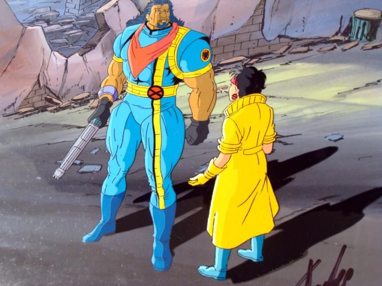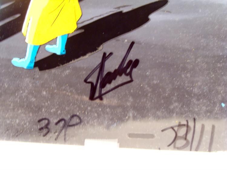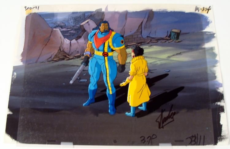 This is an original signed production cel and background from the hit series X-Men. Stan Lee signature is located on the bottom of cel in black sharpie. * * Under a cloud of increasing anti-mutant sentiment, Professor Xavier creates a haven at his Westchester mansion to train young mutants to use their powers for the benefit of humanity, and to prove mutants can be heroes. Xavier recruited Cyclops, Iceman, Angel, * Beast and Jean Grey calling them "X-Men" because they possessed the "x-gene", an ability normal humans lacked. Early issues introduced the team's arch enemy, Magneto and his Brotherhood of Evil Mutants, who would later battle the X-Men for years. * * Honestly, I really don't know why Professor Xavier sent us out here in the first... * * * * * * * Original Production Background and Animated Cel Overall Size of Background: 10" x 14 1/4" Overall Size of the Cel: 10 1/2" x 12 1/2" Excellent Condition * * * This is an original hand-painted cel set-up used in the production of an episode of "X-MEN." Each one-of-a-kind set-up represents a slight change in position of the characters. When individually photographed and projected in rapid succession, the images * appear to move. * * To create production cels, the original animator's drawing is transferred onto an acetate cel (by hand-inking and/or photo copying). The cel is then hand-painted on the reverse side. The background accompanying this set-up is a hand-painted original production * background. * * The background and cel are ready to be matted and framed. It is a colored background with a cel and has the animator's notations at the bottom of the cel and the top and bottom of the background. * * * * *