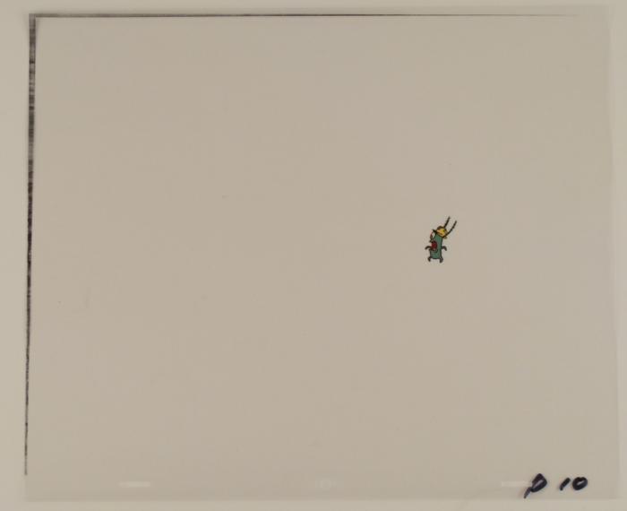 To create production cels, the original animator's drawing is transferred onto an acetate cel (by hand-inking and/or photo copying). The cel is then hand-painted on the reverse side. The cel received by the winning bidder may be every so slightly different from the one in the auction photos. The cel is ready to be matted and framed. The animator's notations are at the bottom of the cel.