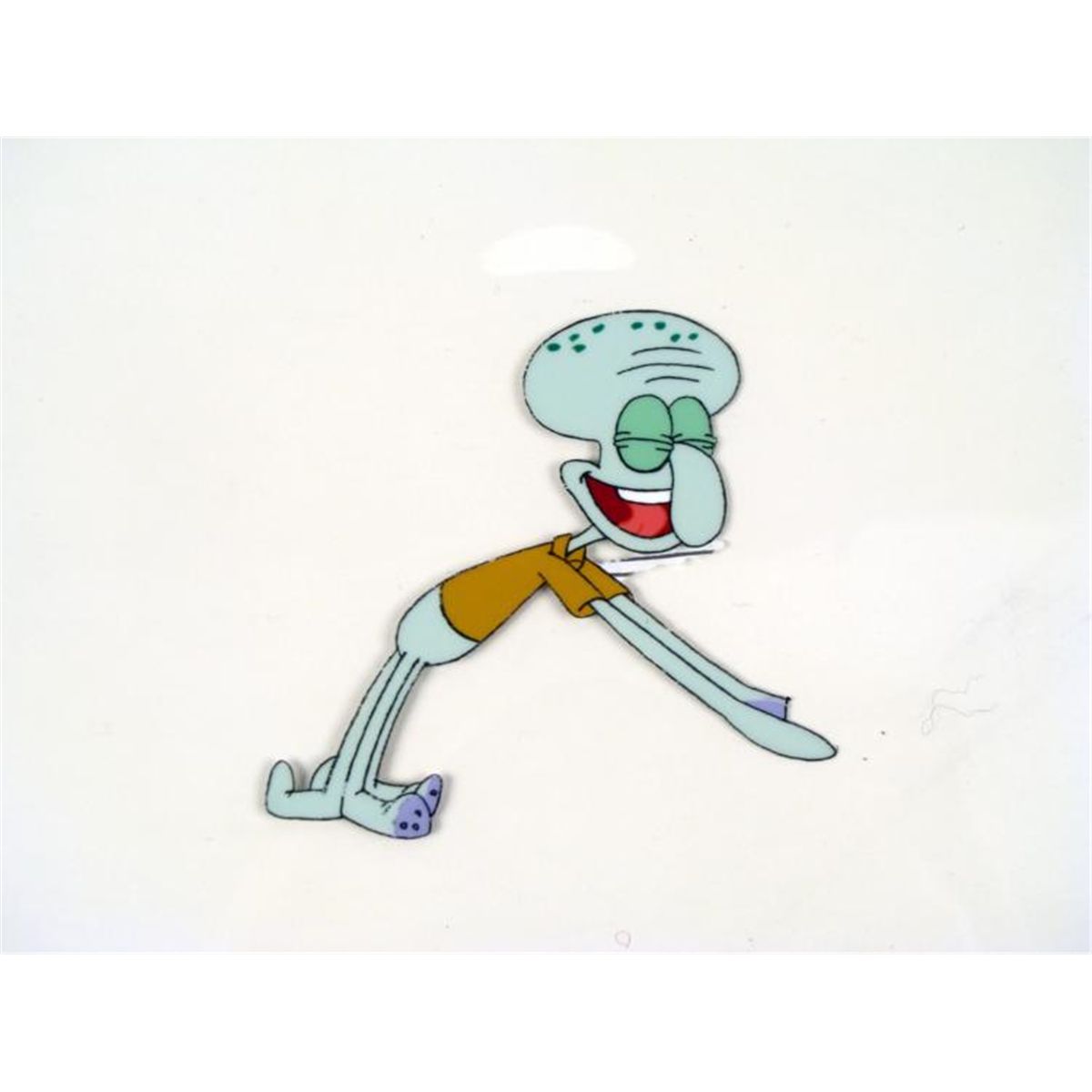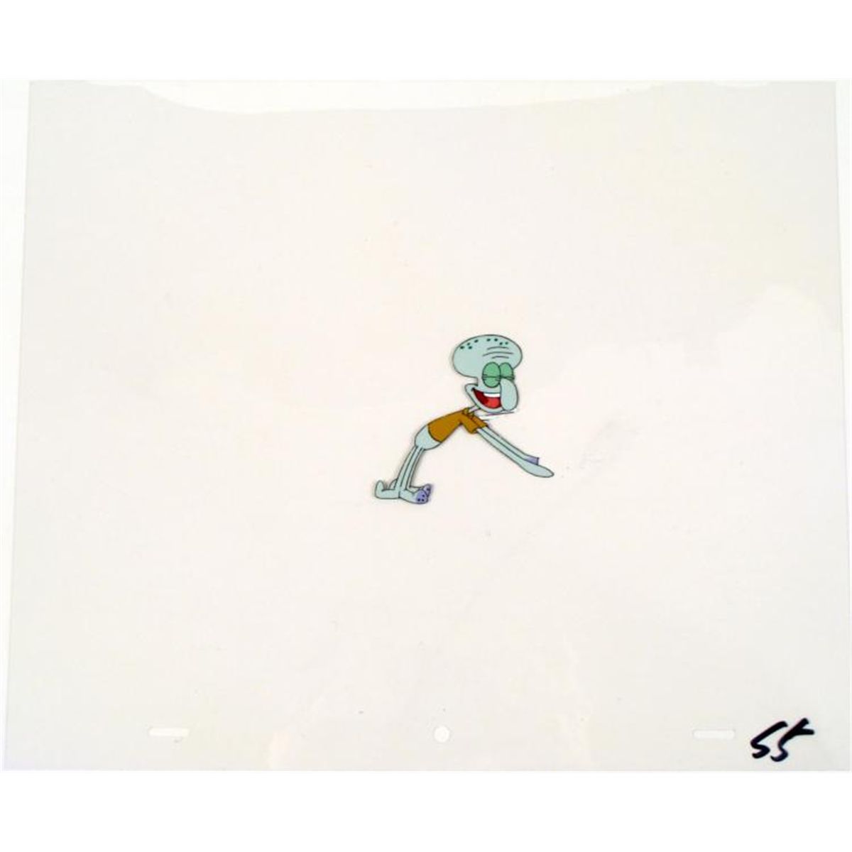 Normal 0 false false false MicrosoftInternetExplorer4 /* Style Definitions */ table.MsoNormalTable{mso-style-name:"Table Normal";mso-tstyle-rowband-size:0;mso-tstyle-colband-size:0;mso-style-noshow:yes;mso-style-parent:"";mso-padding-alt:0in 5.4pt 0in 5.4pt;mso-para-margin:0in;mso-para-margin-bottom:.0001pt;mso-pagination:widow-orphan;font-size:10.0pt;font-family:"Times New Roman";mso-ansi-language:#0400;mso-fareast-language:#0400;mso-bidi-language:#0400;}This original animation cel is from the Nickelodeon TV show SpongeBob Squarepants. The story takes place under the deep blue seain Bikini Bottom, where SpongeBob resides. SpongeBob, who is a yellow, porous sponge, is your typical happy-go-lucky character, as he is always cheerful and enjoys making people laugh. Patrick Star, SpongeBob's neighbor who is a starfish, is your average children's show idiot, as he boasts knowing nothing and is often getting himself into ridiculous situations. Between the homes of these two lies the home of the miserable Squidward, a squid, who is known for being grouchy and playing tricks on SpongeBob and Patrick. Both SpongeBob and Squidward work at the Krusty Krab, a fast food business run by the greedy money-loving Mr. Krabs, a crab, the arch rival of the evil, possibly misunderstood, Plankton. Another neighbor, Sandy Cheeks, an athletic squirrel who normally wears an astronaut's space suit, was introduced in "Tea at the Treedome." She spends most of her time inventing and experimenting. * Let me help you with that... If you haven't noticed, I have been working out... * * Original Production Animated Cel Overall Size of Cel: 10 1/2" x 12 1/2" Very Good ConditionThis is an original hand-painted cel set-up used in the production of an episode of "SpongeBob SquarePants." Each one-of-a-kind set-up represents a slight change in position of the characters. When individually photographed and projected in rapid succession, the images appear to move. * To create production cels, the original animator's drawing is transferred onto an acetate cel (by hand-inking and/or photo copying). The cel is then hand-painted on the reverse side. * The cel is ready to be matted and framed. The animator's notations are at the bottom of the cel. There is some slight paint fade to Squidward's outline. * *