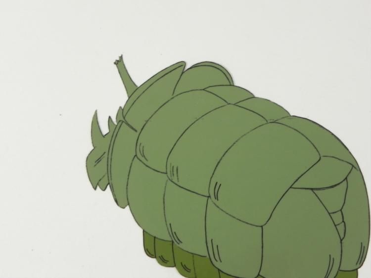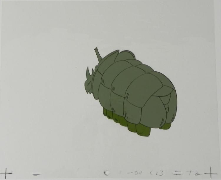The Herculoids battled to defend their planet from menaces on * Amzot/Quasar and from outer space. All of the Herculoids displayed * Human-level intelligence - employing precision teamwork and complex * tactics - as well as emotions, and Zandor and Tara both * displayed a working knowledge of complex alien technologies as well as * the ability to pilot interstellar spacecraft—but essentially, Zandor, * Tara, Dorno, and the Herculoids were fighting to keep Amzot/Quasar a * technology-free, primitive planet. This is further * indicated by the pseudo-barbarian outfits of Zandor, Tara, and Dorno * and the fact that technology was used mainly by the various villains, * but rarely if ever by the heroes. Although the "speech" of their * companions was limited and repetitive, Zandor, Tara * and Dorno demonstrated that Gloop and Gleep, at least, had a * comprehensive mode of communication, and that they could at least * understand and interpret this language. * * * * **The cel is at least 35 years old. * * After a long day of work, it looks like Tundro is retiring for the evening... * * Original Animation CelSize of * cel: 10 1/2" x 12 1/2"Excellent * condition * This is * an original hand-painted cel set-up * used in the production of an episode of "Herculoids." Each one-of-a-kind * set-up represents a slight change in position of the characters. When * individually photographed and projected in rapid succession, * the images * appear to move. To create production cels, the original animator's * drawing is * transferred onto an acetate cel (by hand-inking and/or photo copying). * The cel is then hand-painted on the reverse side. * * *The cel received by the winning bidder may be ever so slightly different from that in the auction photo. * * * The cel is ready to be matted and * framed. The notations are located at the bottom of * the cel. * *