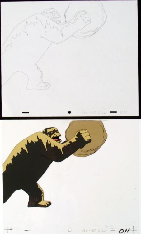 The Herculoids battled to defend their planet from menaces on Amzot/Quasar and from outer space. All of the Herculoids displayed Human-level intelligence - employing precision teamwork and complex tactics - as well as emotions, and Zandor and Tara both displayed a working knowledge of complex alien technologies as well as the ability to pilot interstellar spacecraft-but essentially, Zandor, Tara, Dorno, and the Herculoids were fighting to keep Amzot/Quasar a technology-free, primitive planet. This is further indicated by the pseudo-barbarian outfits of Zandor, Tara, and Dorno and the fact that technology was used mainly by the various villains, but rarely if ever by the heroes. Although the "speech" of their companions was limited and repetitive, Zandor, Tara and Dorno demonstrated that Gloop and Gleep, at least, had a comprehensive mode of communication, and that they could at least understand and interpret this language. **The cel and drawing are at least 35 years old. See... I told you I could do it, so now pay up!! Original Animation and Drawing Original "rough" animation drawing, in black pencil with the notations in black. Overall Size of Drawing: 10 1/2" x 12 1/2" Overall Size of the Cel: 10 1/2" x 12 1/2" Excellent Condition This is an original hand-painted cel set-up used in the production of an episode of "Herculoids." Each one-of-a-kind set-up represents a slight change in position of the characters. When individually photographed and projected in rapid succession, the images appear to move. To create production cels, the original animator's drawing is transferred onto an acetate cel (by hand-inking and/or photo copying). The cel is then hand-painted on the reverse side. The cel and drawing received by the winning bidder may be ever so slightly different from that in the auction photo. The drawing and cel are ready to be matted and framed. The notations are located at the bottom of the drawing and cel.