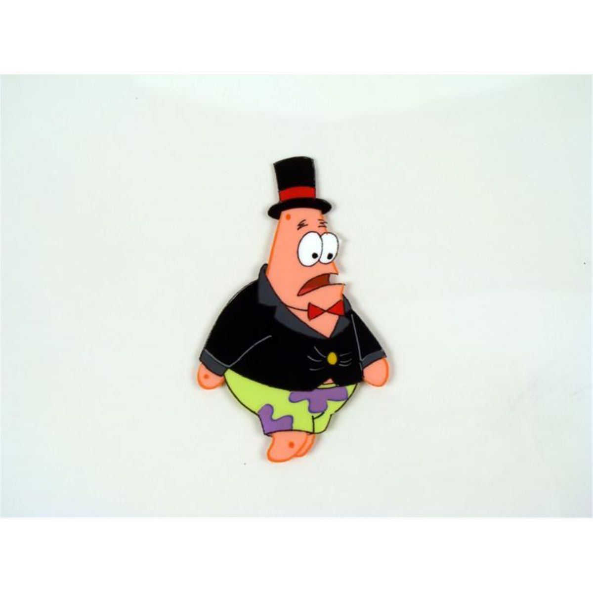 Normal 0 false false false MicrosoftInternetExplorer4 /* Style Definitions */ table.MsoNormalTable{mso-style-name:"Table Normal";mso-tstyle-rowband-size:0;mso-tstyle-colband-size:0;mso-style-noshow:yes;mso-style-parent:"";mso-padding-alt:0in 5.4pt 0in 5.4pt;mso-para-margin:0in;mso-para-margin-bottom:.0001pt;mso-pagination:widow-orphan;font-size:10.0pt;font-family:"Times New Roman";mso-ansi-language:#0400;mso-fareast-language:#0400;mso-bidi-language:#0400;}This original animation cel is from the Nickelodeon TV showSpongeBob Squarepants. The story takes place under the deep blue seain Bikini Bottom, where SpongeBob resides. SpongeBob, who is a yellow,porous sponge, is your typical happy-go-lucky character, as he is alwayscheerful and enjoys making people laugh. Patrick Star, SpongeBob's neighbor whois a starfish, is your average children's show idiot, as he boasts knowingnothing and is often getting himself into ridiculous situations. Between the homesof these two lies the home of the miserable Squidward, a squid, who is knownfor being grouchy and playing tricks on SpongeBob and Patrick. Both SpongeBoband Squidward work at the Krusty Krab, a fast food business run by the greedymoney-loving Mr. Krabs, a crab, the arch rival of the evil, possiblymisunderstood, Plankton. Another neighbor, Sandy Cheeks, an athletic squirrelwho normally wears an astronaut's space suit, was introduced in "Tea atthe Treedome." She spends most of her time inventing andexperimenting. * Oh my god, what the... I didn't see anything... * * Original Production Animated Cel Overall Size of Cel: 10 1/2" x 12 1/2" Excellent ConditionThis is an original hand-painted cel set-up used in the productionof an episode of "SpongeBob SquarePants." Each one-of-a-kind set-uprepresents a slight change in position of the characters. When individuallyphotographed and projected in rapid succession, the images appear to move. * To create production cels, the original animator's drawing is transferred ontoan acetate cel (by hand-inking and/or photo copying). The cel is thenhand-painted on the reverse side. * The cel received by the winning bidder may be ever so slightly differentfrom the one in the auction photos. * The cel is ready to be matted andframed. The animator's notations are atthe bottom of the cel. *