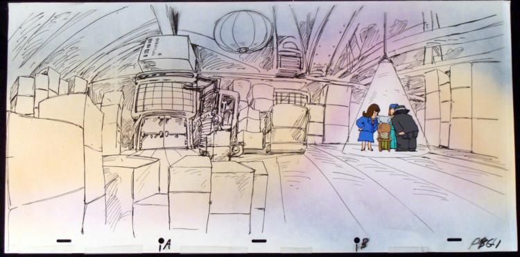 Offered here is an original animation cel and background of what appears to be an interrogation room.TELL ME WHERE THE NUCLEAR WARHEADS ARE AND THIS WILL ALL BE OVER RATHER QUICKLY!!Original Animation Cel and BackgroundSize of cel: 11" x 25"Size of background: 10 1/2" x 21"Overall condition: Cel- Very good; slight cracks and smudges and Background- ExcellentThis is an original hand-painted cel. Each cel represents a slight change in position of the characters. When individually photographed and projected in rapid succession, the images appear to move. To create production cels, the original animator's drawing is transferred onto an acetate cel (by hand-inking and/or photo copying). The cel is then hand-painted on the reverse side. The background accompanying this set-up is a hand-painted original production background. The background and cel are ready to be matted and framed. The animators notations are located at the bottom of both.