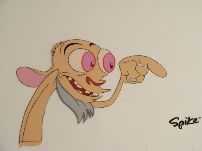 This is an original production animation cel from the Nickelodeon TV show Ren & Stimpy. The show follows two characters - Ren, a crazy Chihuahua - and - Stimpy, an incredibly stupid cat - as they think up to all kinds of hair brained schemes and get themselves into some sticky situations. The Ren and Stimpy Show debuted in August 1991 with a two-part episode, 'Stimpy's Big Day / The Big Shot' and became an instant hit. It was the third Nicktoon ever to be aired on the Network alongside Doug and Rugrats. Ren and a gray beard.Original Production Art Cel Overall Size of the Cel: 10 1/2" x 12 1/2" Very Good condition This is an original hand-painted cel set-up used in the production of an episode of "The Ren & Stimpy Show." Each one-of-a-kind set-up represents a slight change in position of the characters. When individually photographed and projected in rapid succession, the images appear to move.