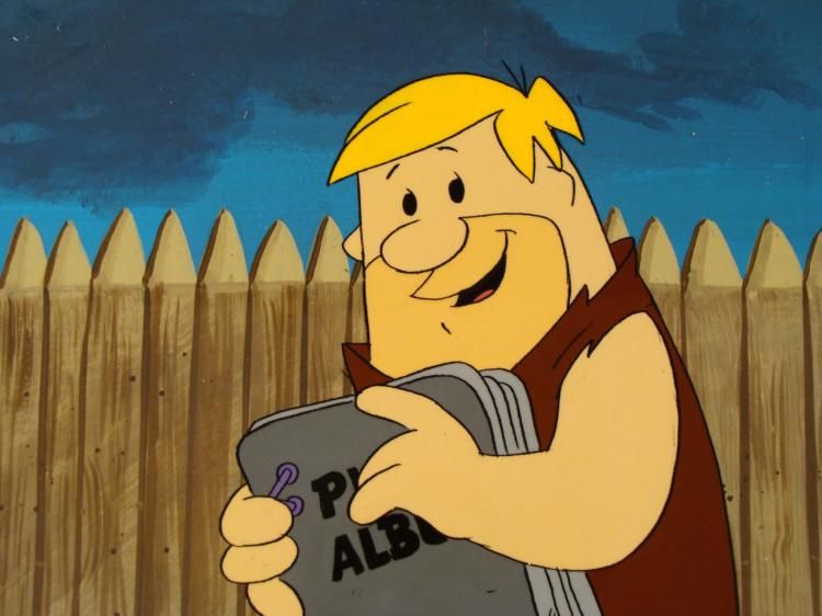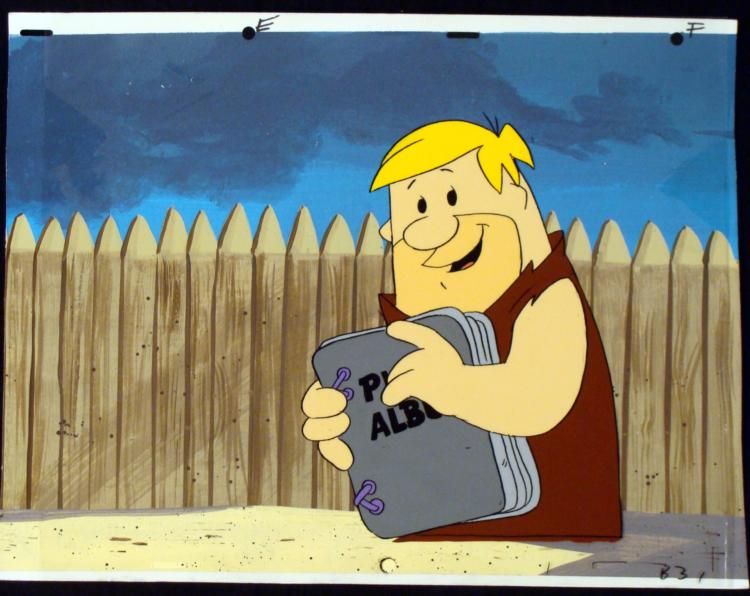 The show is set in the Stone Age town of Bedrock. (In some of the earlier episodes, it was also referred to as "Rockville"). The Flintstones was about a working-class Stone Age man's life with his family and his next-door neighbor and best friend. The show's continuing popularity rested heavily on its juxtaposition of modern everyday concerns in the Stone Age setting. In this fantasy version of the past, dinosaurs, saber-toothed tigers, woolly mammoths, and other long-extinct animals co-exist with cavemen. Like their mid-20th century peers, these cavemen listen to records, live in split-level homes, and eat out at restaurants, yet their technology is made entirely from pre-industrial materials and largely powered through the use of various animals. For example, the cars are made out of stone, wood, and animal skins, and powered by the passengers' feet. Now here is special photo album that has taken me years to finish and I want to show you what I've done with it... Original Production Background and Animated Cel Overall Size of Background: 10 1/2" x 13 1/2" Overall Size of the Cels: 10 1/2" x 12 1/2" Excellent condition This is an original hand-painted cel set-up used in the production of an episode of "The Flintstones." Each one-of-a-kind set-up represents a slight change in position of the characters. When individually photographed and projected in rapid succession, the images appear to move. To create production cels, the original animator's drawing is transferred onto an acetate cel (by hand-inking and/or photo copying). The cel is then hand-painted on the reverse side. The background accompanying this set-up is a hand-painted original production background. The drawing is ready to be matted and framed. The animator's notations are shown at the top of the background and the bottom of the cel.