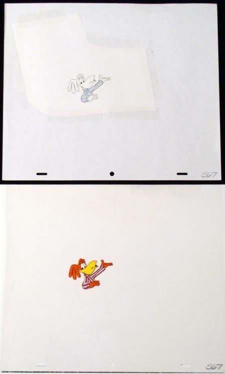 Take whatever you want. What is mine is yours and what is yours is mine... * Original Animation Cel * and * Copied Drawing in non-photo blue pencilOverall * size: 10 1/2" x 12 1/2"Overall condition: Excellent * This is an original hand-painted cel * used in the TV commercial of "Coco * Puffs". Each cel represents a slight change in position of the * characters. When individually photographed and projected in rapid * succession, the images appear to * move.To create production cels, the original animator's drawing is * transferred onto an acetate cel (by hand-inking and/or photo copying). * The cel is then hand-painted on the reverse side. * * The * cel and drawing are * ready to be matted and framed. The animator's * notations are at the bottom of both. The copied drawing is * taped to a piece of paper. *