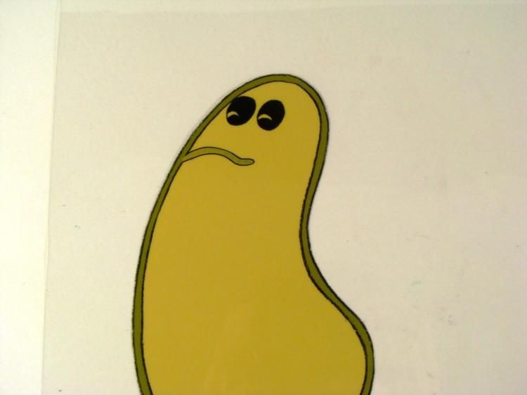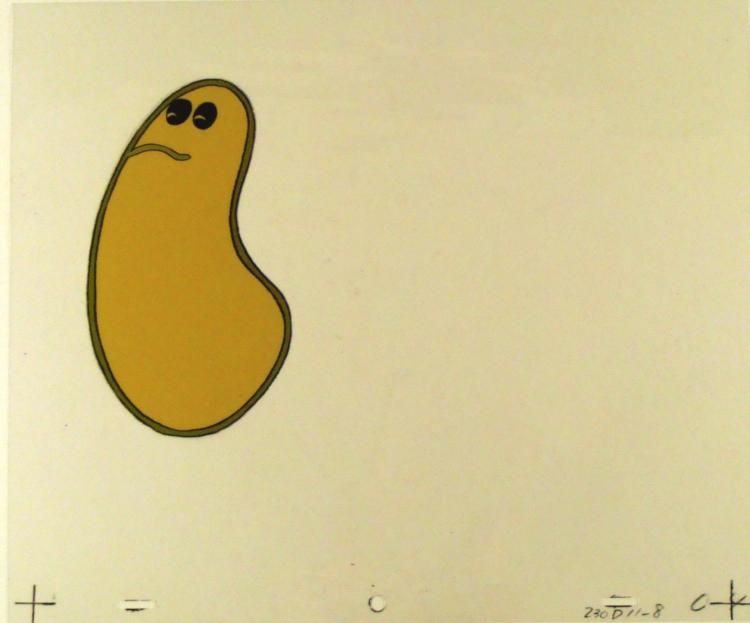 The Herculoids battled to defend their planet from menaces on * Amzot/Quasar and from outer space. All of the Herculoids displayed * Human-level intelligence - employing precision teamwork and complex * tactics - as well as emotions, and Zandor and Tara both * displayed a working knowledge of complex alien technologies as well as * the ability to pilot interstellar spacecraft—but essentially, Zandor, * Tara, Dorno, and the Herculoids were fighting to keep Amzot/Quasar a * technology-free, primitive planet. This is further * indicated by the pseudo-barbarian outfits of Zandor, Tara, and Dorno * and the fact that technology was used mainly by the various villains, * but rarely if ever by the heroes. Although the "speech" of their * companions was limited and repetitive, Zandor, Tara * and Dorno demonstrated that Gloop and Gleep, at least, had a * comprehensive mode of communication, and that they could at least * understand and interpret this language. * * * * **The cel is at least 35 years old. * * Original Animation CelSize of cel: 10 1/2" x 12 1/2"Excellent condition * This is an original hand-painted cel set-up * used in the production of an episode of "Herculoids." Each one-of-a-kind * set-up represents a slight change in position of the characters. When * individually photographed and projected in rapid succession, * the images * appear to move. To create production cels, the original animator's drawing is * transferred onto an acetate cel (by hand-inking and/or photo copying). * The cel is then hand-painted on the reverse side. * * The cel is ready to be matted and * framed. The notations are located at the bottom of * the cel. * *