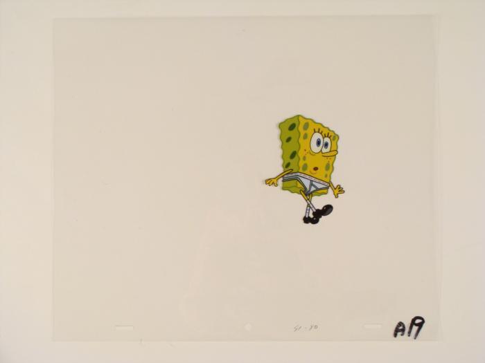 This original animation cel is from the Nickelodeon TV show SpongeBob Squarepants. The story takes place under the deep blue sea in Bikini Bottom, where SpongeBob resides. SpongeBob, who is a yellow, porous sponge, is your typical happy-go-lucky character, as he is always cheerful and enjoys making people laugh. Patrick Star, SpongeBob's neighbor who is a starfish, is your average children's show idiot, as he boasts knowing nothing and is often getting himself into ridiculous situations. Between the homes of these two lies the home of the miserable Squidward, a squid, who is known for being grouchy and playing tricks on SpongeBob and Patrick. Both SpongeBob and Squidward work at the Krusty Krab, a fast food business run by the greedy money-loving Mr. Krabs, a crab, the arch rival of the evil, possibly misunderstood, Plankton. Another neighbor, Sandy Cheeks, an athletic squirrel who normally wears an astronaut's space suit, was introduced in "Tea at the Treedome." She spends most of her time inventing and experimenting. Original Production Animated Cel Overall Size of Cel: 10 1/2" x 12 1/2" Excellent ConditionThis is an original hand-painted cel set-up used in the production of an episode of "SpongeBob SquarePants." Each one-of-a-kind set-up represents a slight change in position of the characters. When individually photographed and projected in rapid succession, the images appear to move.