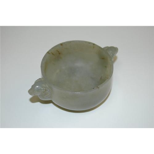 Celadon Jade Cup with two ram head on the side.19th Century. Very good condition.