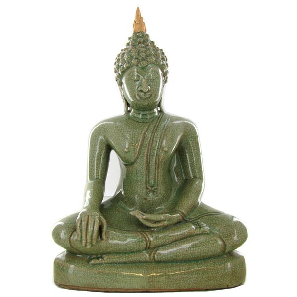 Excellent well made piece, distinctive green crackle glaze, 15"