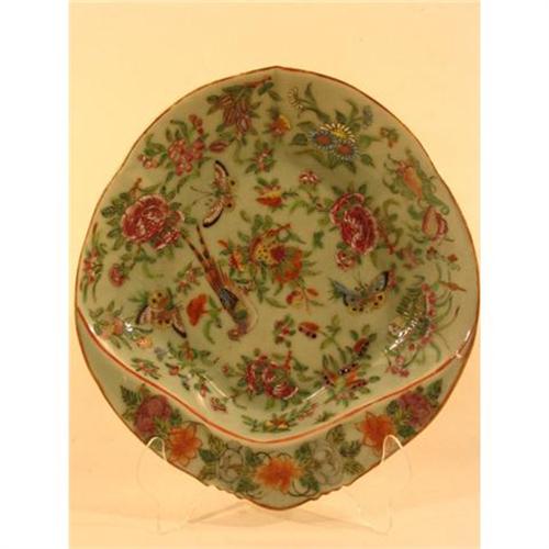 Celadon Shrimp Dish dating to the mid 1800's and having nice cream color to the green and good detail to the decoration. The form and decoration are of the period. This piece is in very good condition having no rim chips or abrasions. Measuring 10 1/4 by 9 1/2 wide