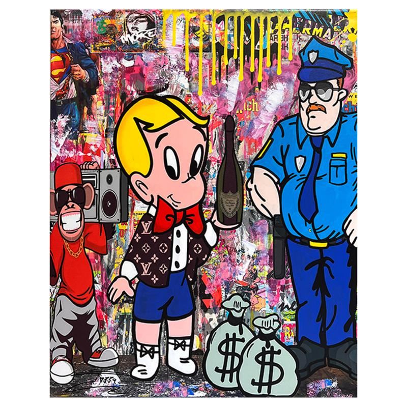 "Celebration" is a unique mixed media acrylic on gallery wrapped canvas by Jozza. Hand Signed by the artist and titled in verso, the piece comes with a letter of authenticity. Measures approximately 30" x 24" (image).