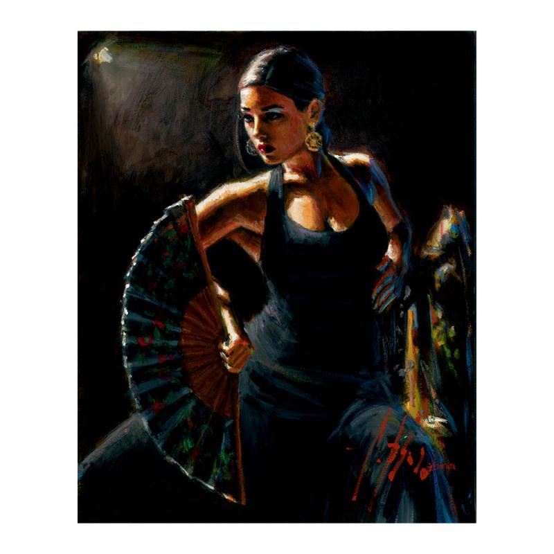 "Celina Con Abanico" is a hand embellished limited edition giclee on stretched canvas by Fabian Perez. The piece is numbered and hand signed by the artist and comes with a Certificate of Authenticity. Measures approx. 28" x 21" (image). Please allow 5 additional business for items that include canvas stretch or framing.