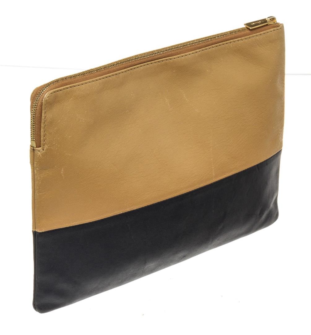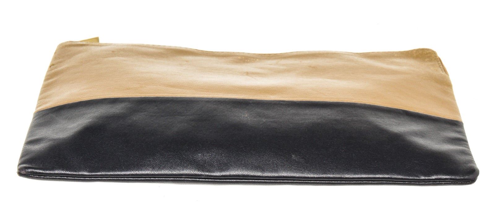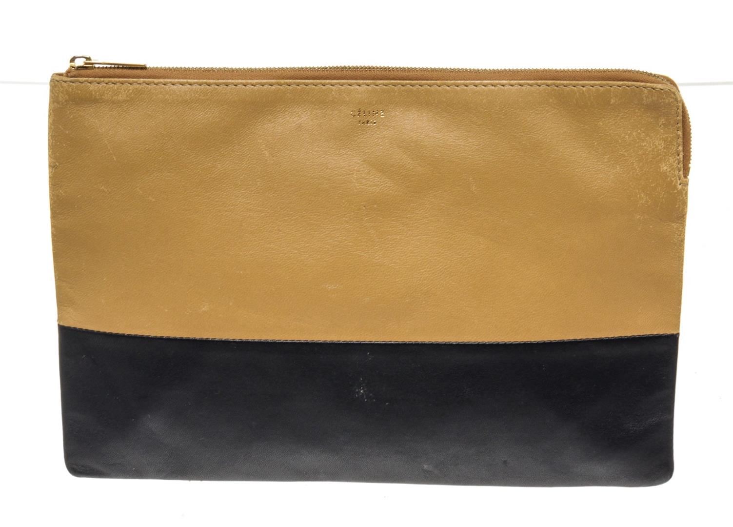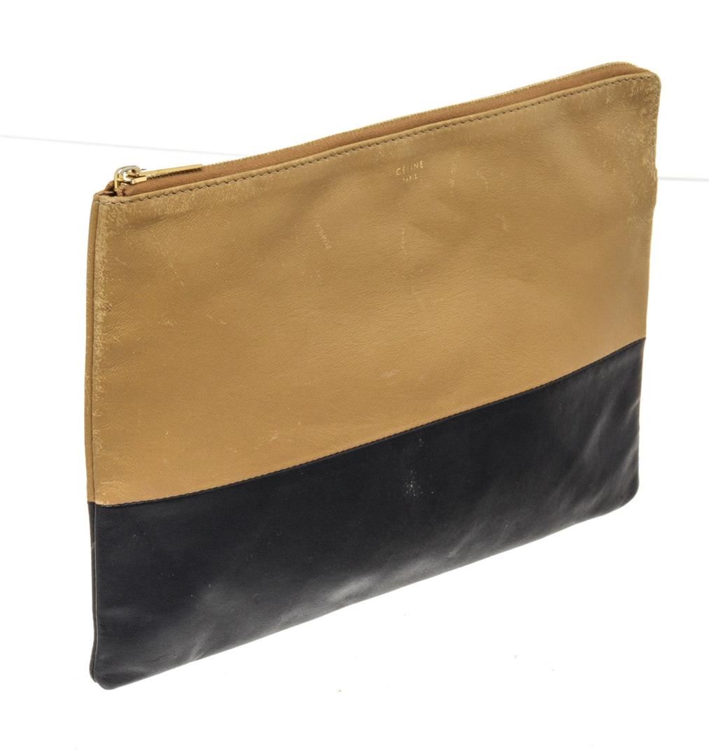 Celine Black Brown Leather Clutch Wallet with leather, gold-tone hardware trim leather and zipper closure.