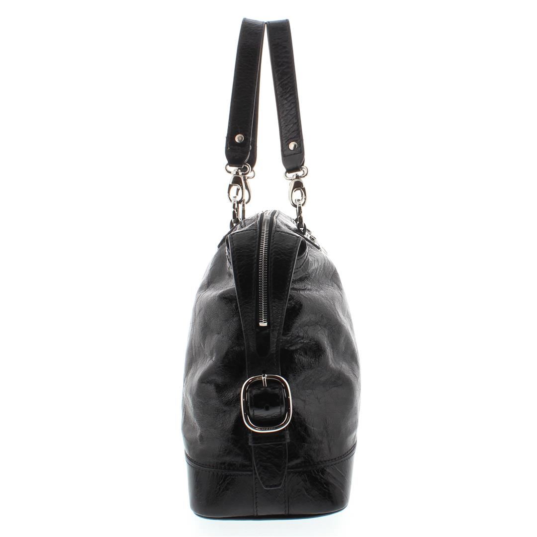 Crafted out of black distressed patent leather, silver-tone hardware, dual flat shoulder handles, and zip top closure, Inner multicolor Celine logo canvas lining and dual slip pockets. Dimensions = 14.25"x5.5"x11"x HD:7"/13.19cmx13.97cmx27.94cmx HD:17.78cm. Item is pre-owned.