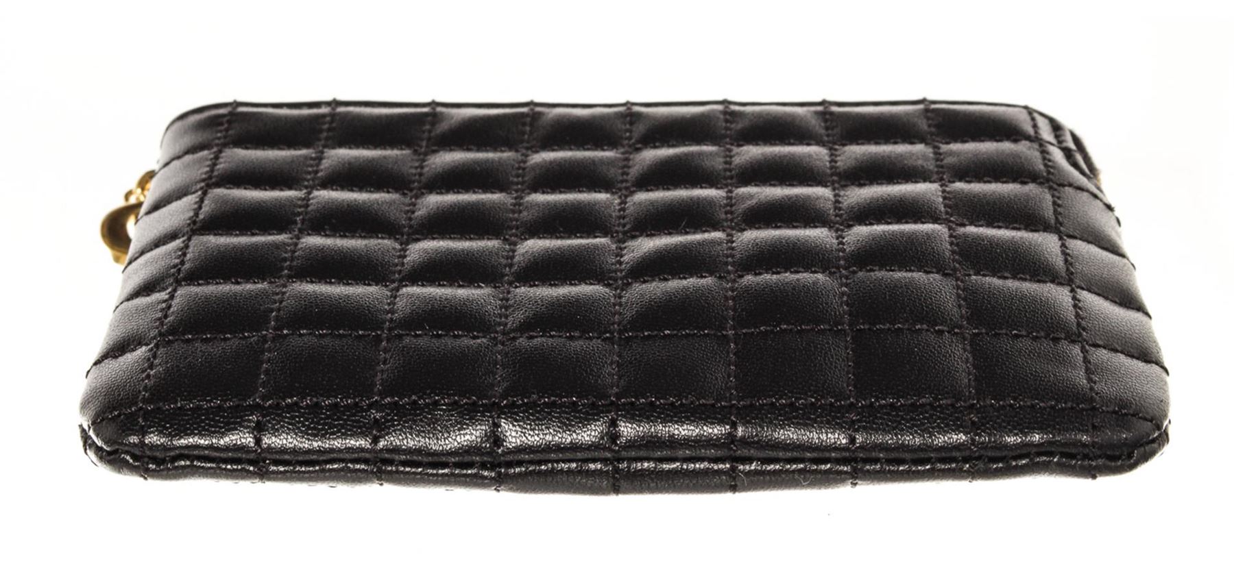 Celine Black Quilted Calfskin Leather C Charm Coin and Card Pouch