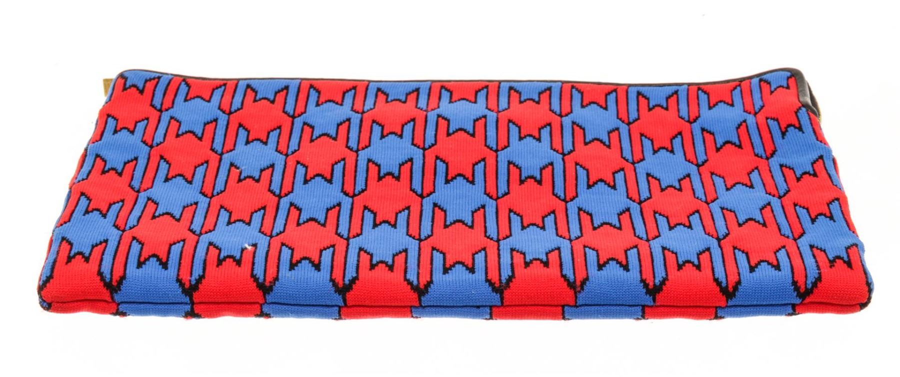Celine Blue, Multicolor, Red Fabic Houndstooth Zip Pouch